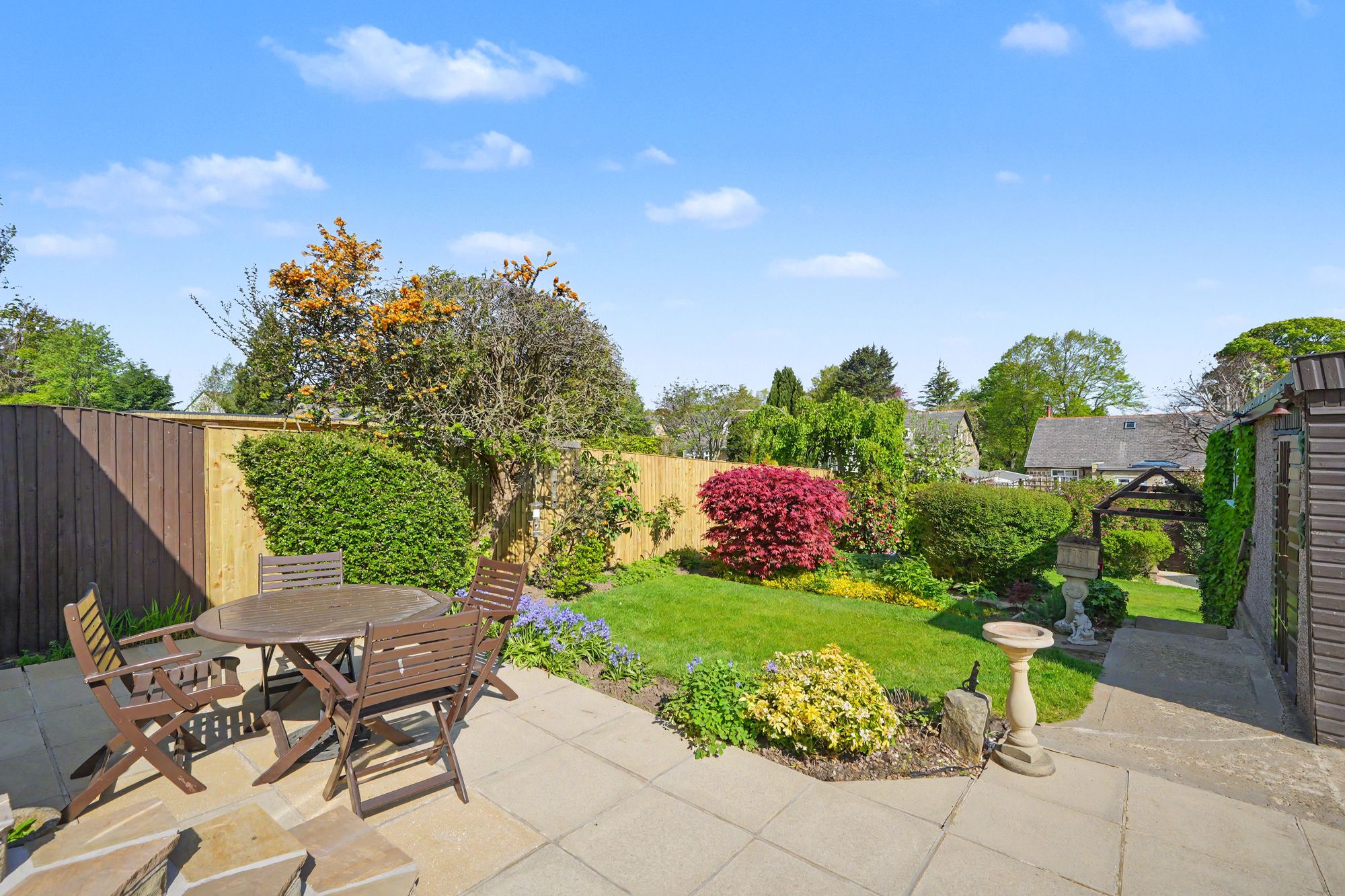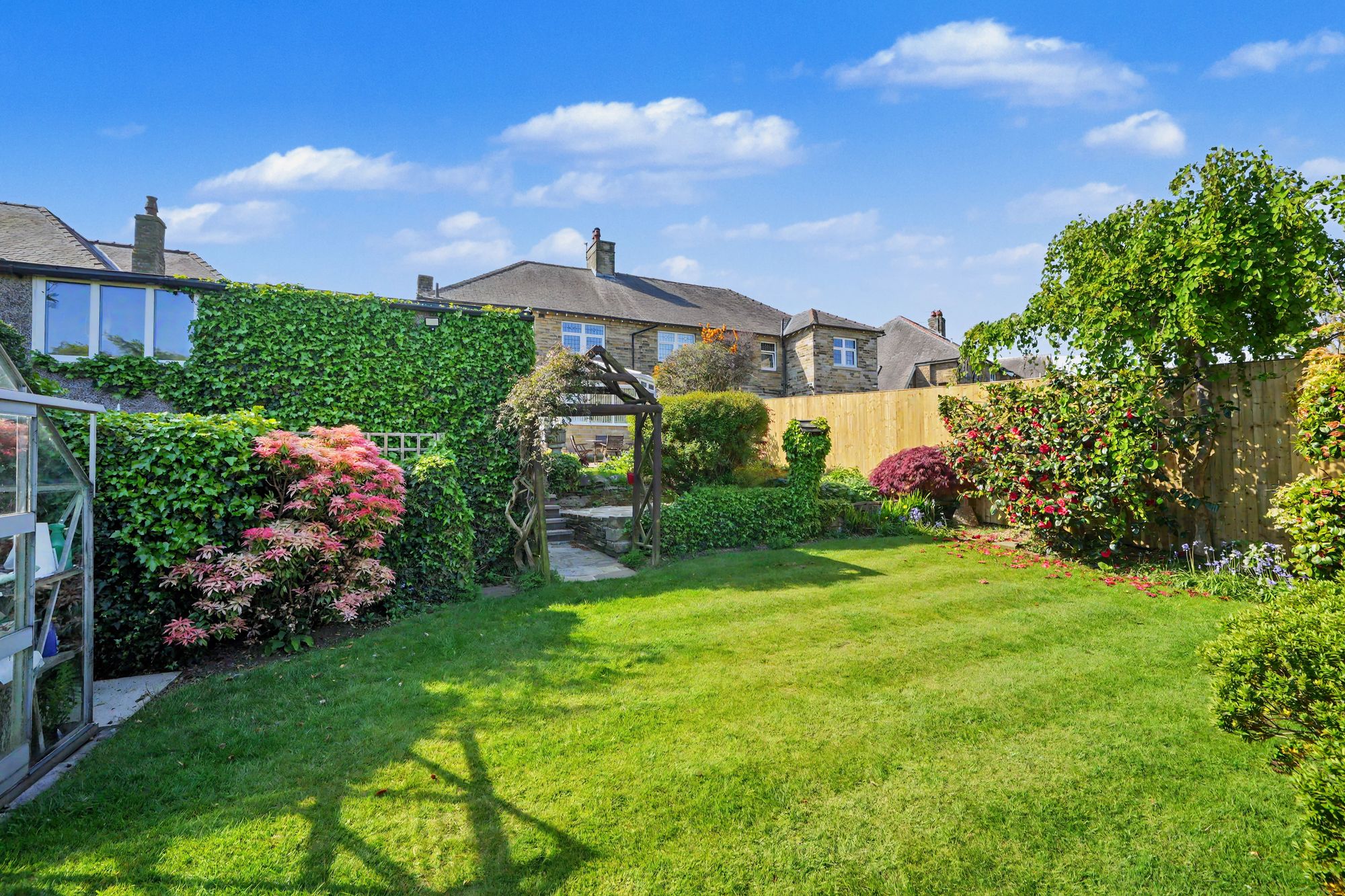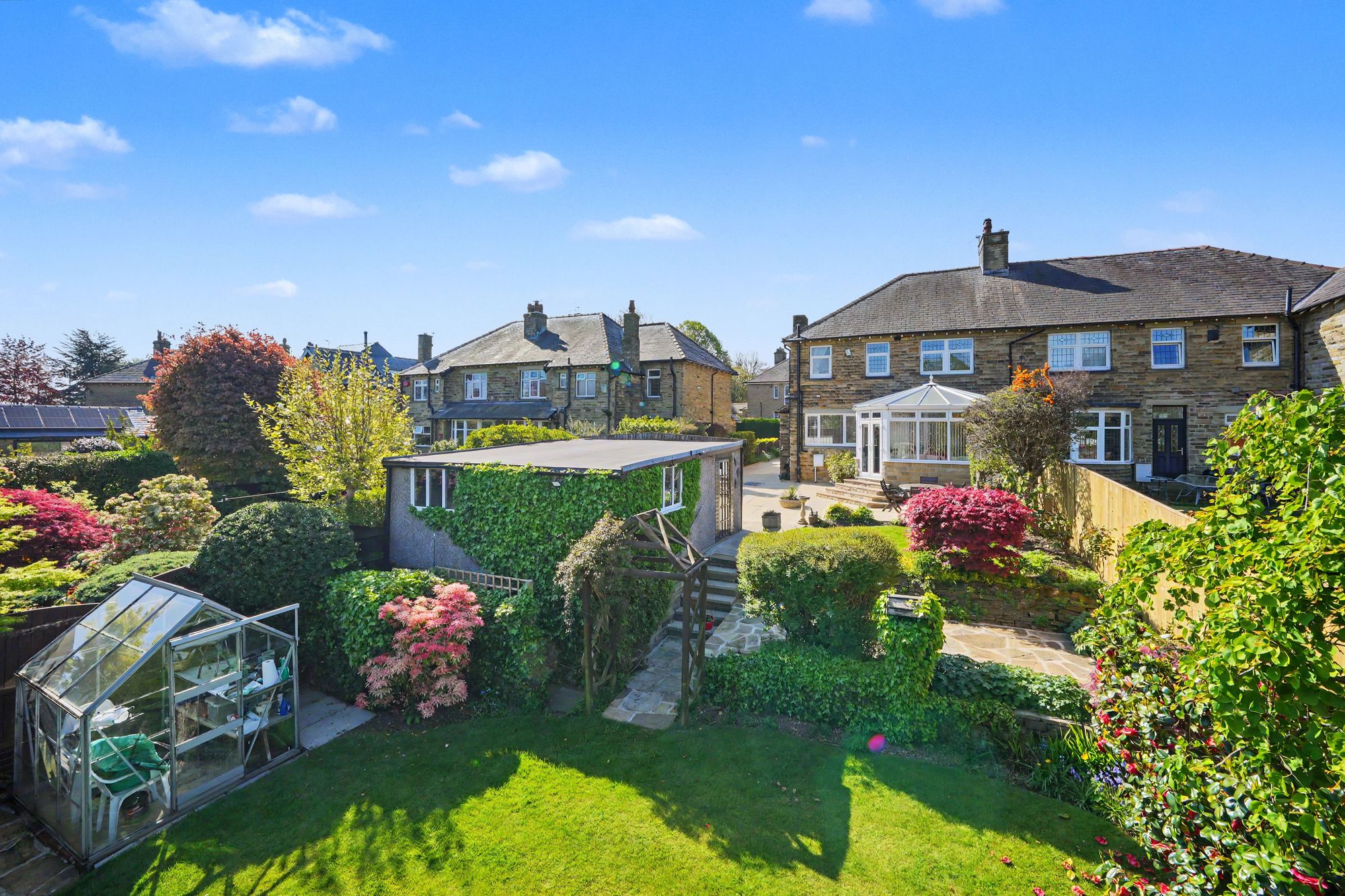Available with vacant possession and no onward chain, a lovely stone built semi-circular bay fronted, 4-bedroom semi-detached house occupying generous established gardens along with a wide flagged driveway and detached double garage.