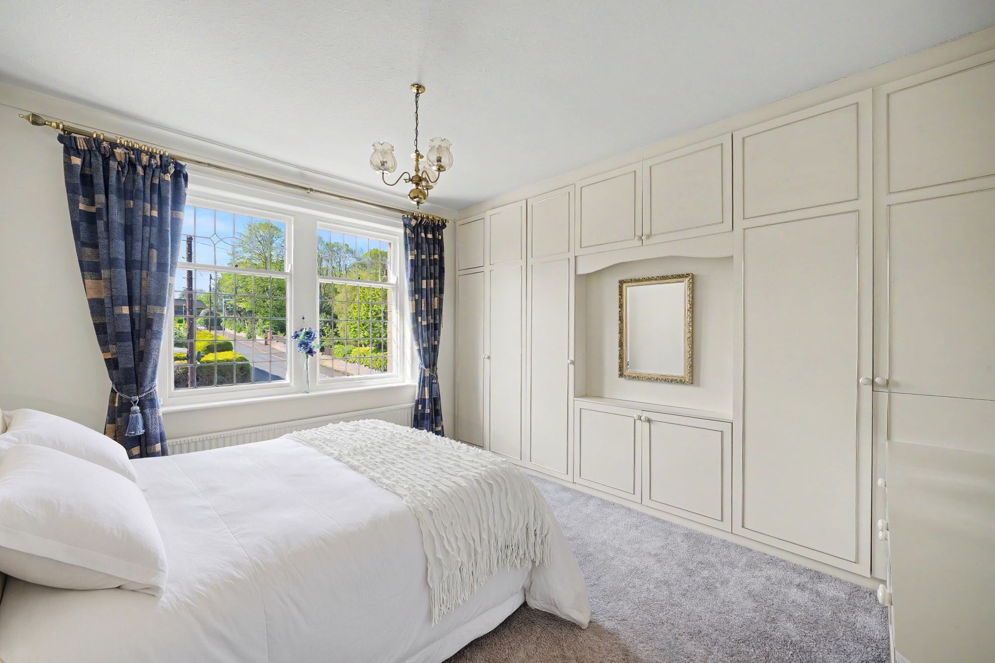 With leaded and glazed windows looking over the front garden, central heating radiator, ceiling light point, ceiling coving, loft access and fitted furniture including floor to ceiling wardrobes, cupboards and dressing table with drawers beneath.