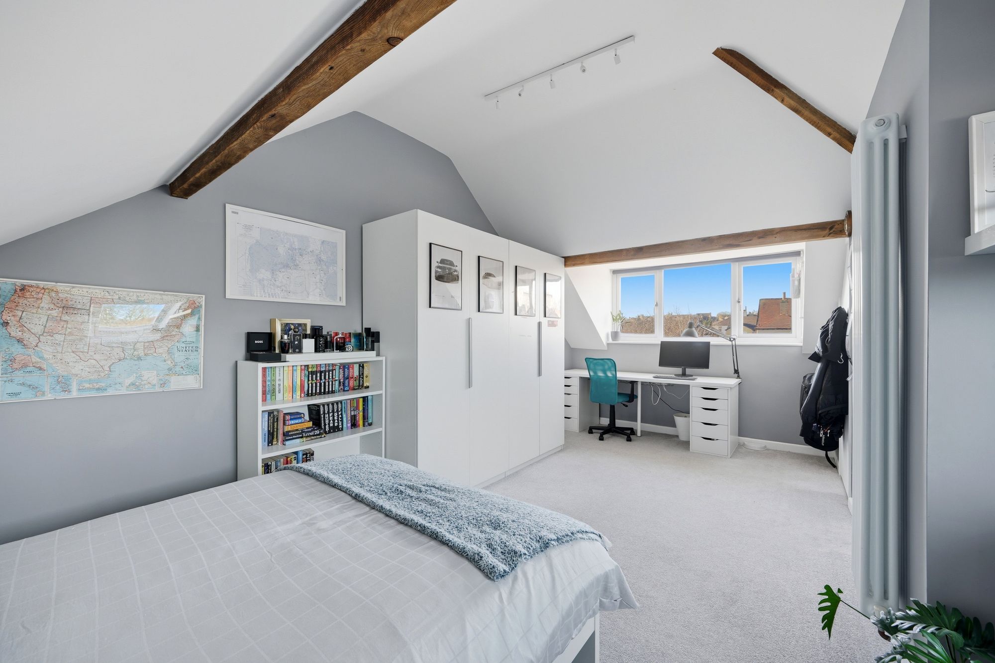 With glass panelled balustrade, column style radiator, Velux double glazed window and with a small door giving access to the eves. From the landing a door opens into bedroom number four.