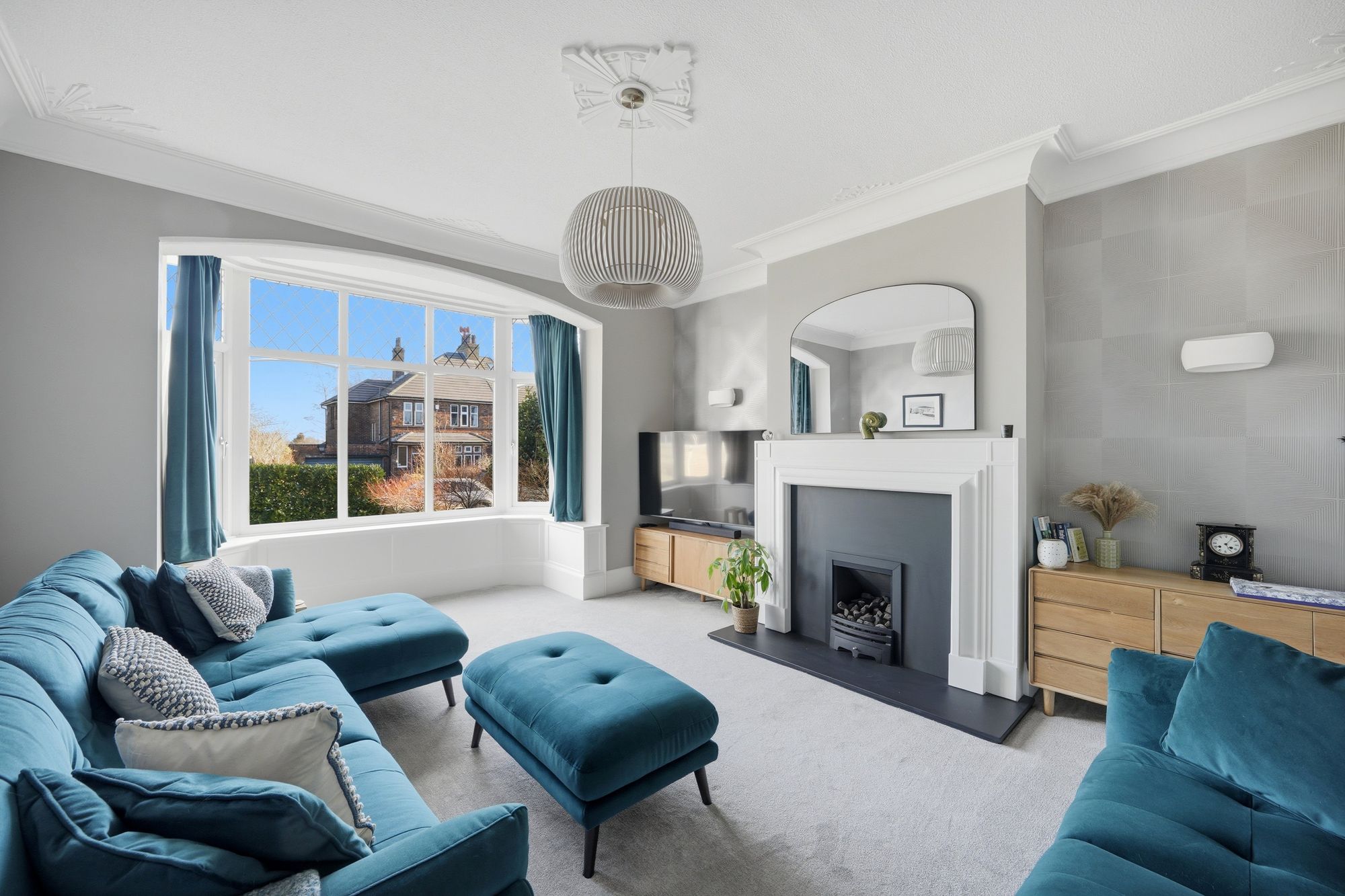 This is the first of two generously proportioned reception rooms with walk in bay with pvcu double glazed windows providing plenty of natural light and looking out across the front garden. There is a decorative ceiling rose with ceiling light point, ceiling coving, two wall light points, central heating radiator and as the main focal point of the room there is a feature fireplace with timber surround and home to a coal effect gas fire which rests on a slate hearth.