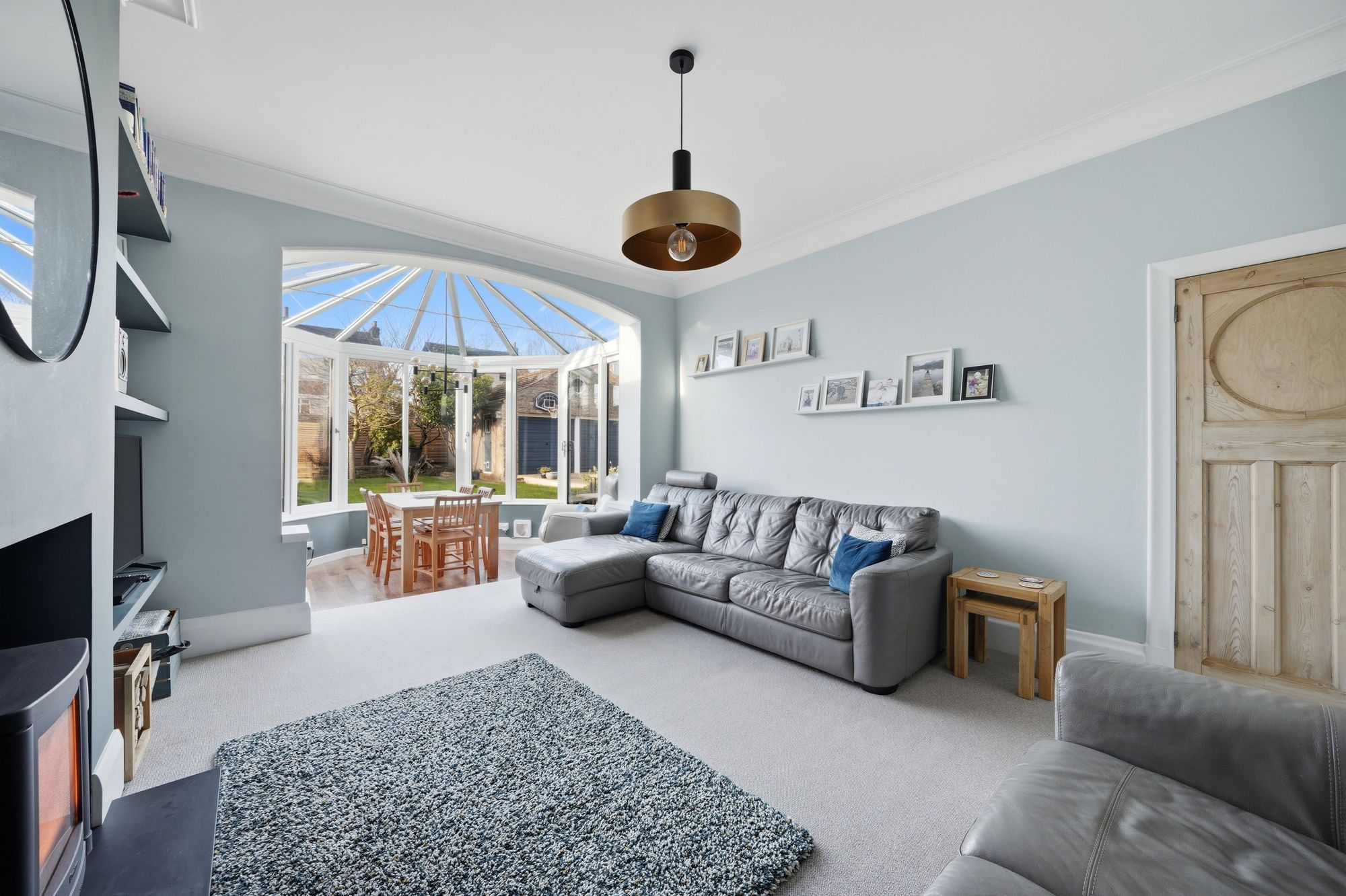 This is situated to the rear of the property and has a ceiling light point, ceiling coving, central heating radiator and as the main focal point of the room housed within the chimney breast there is a Contura wood burning stove which rests on a slate hearth and to either side of the chimney breast there is a fitted shelving. At the far end of and open plan to the sitting room there is a conservatory.