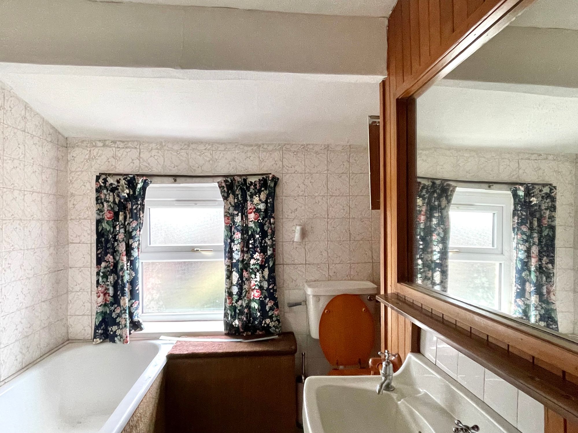 With frosted uPVC double glazed window, a linen cupboard, ceiling light point and fitted with a suite comprising panelled bath, pedestal wash basin and low flush w.c.
