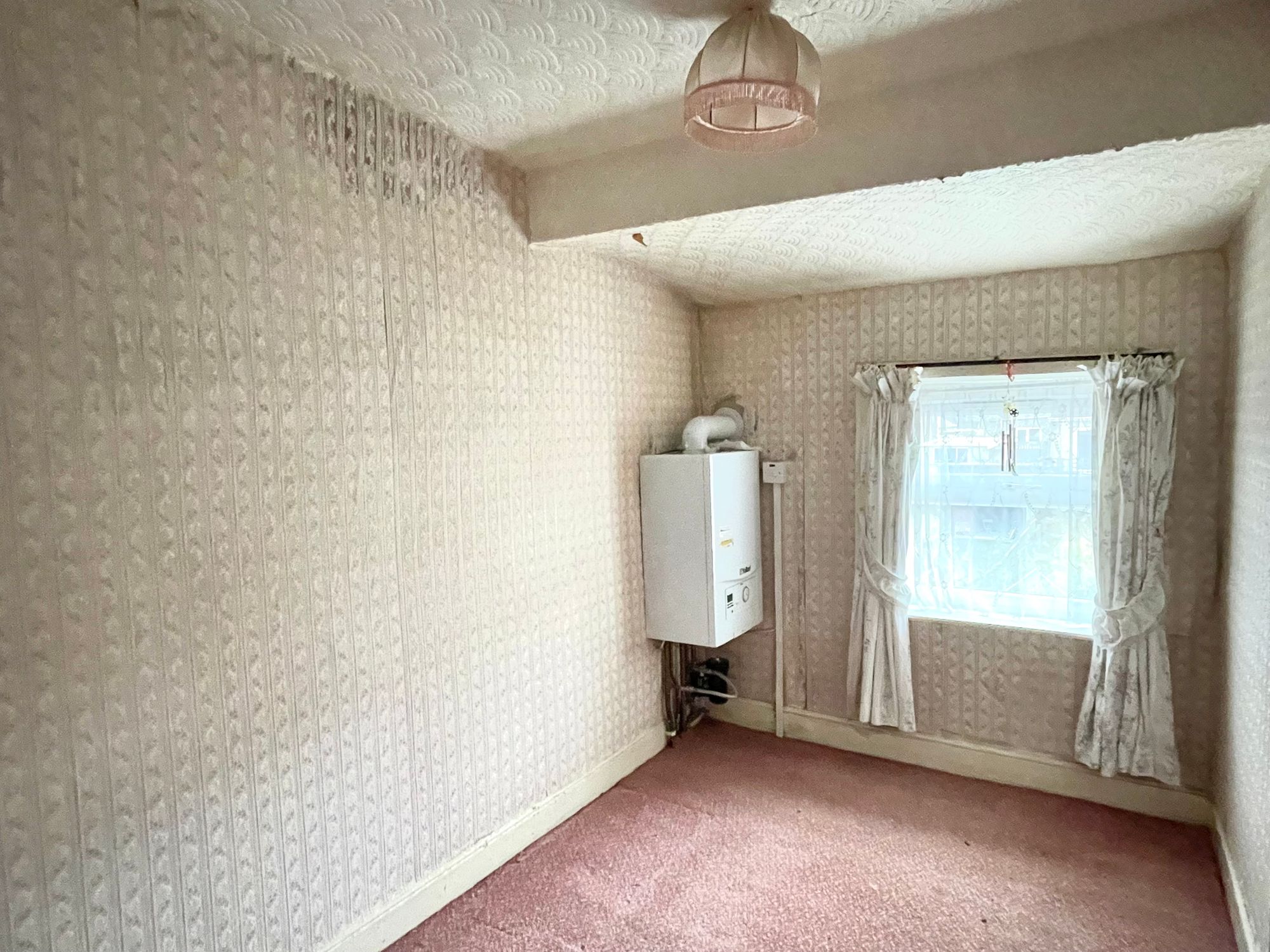 With a uPVC double glazed window looking out over the rear, central heating radiator, ceiling light point and a wall mounted Vaillant gas fired central heating boiler.
