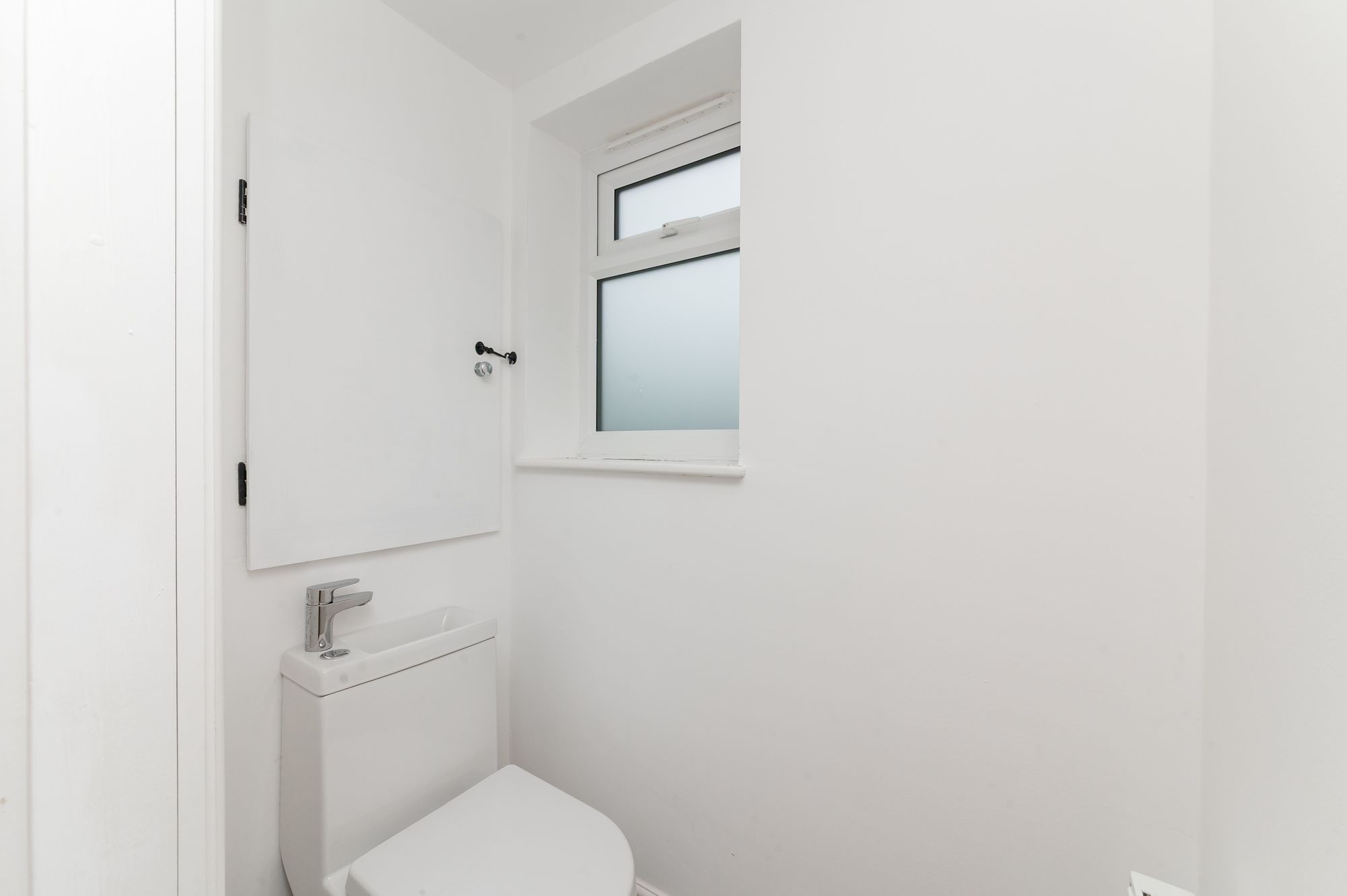 DOWNSTAIRS W.CThen we have a downstairs WC which contains A one-piece suite in white of a low flush WC with integrated hand basin with stainless steel mixer tap over, inset spotlight to the ceiling, UPVC double glazed opaque window, central heating radiator and a small integrated unit which contains the house boiler.
