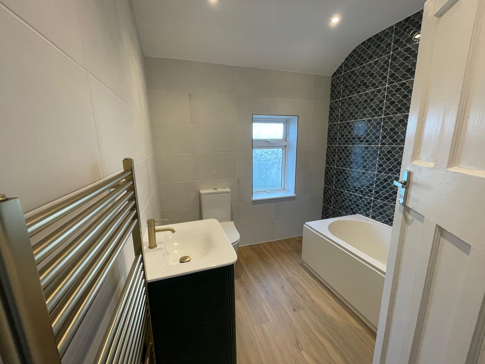 The house bathroom was also recently updated, it is fitted with high quality tiling to the full ceiling height, inset spotlighting. There is a bath with glazed shower screen and high-quality fittings, a low-level W.C., a stylish vanity unit and a ladder style central ceiling radiator to match the high-quality fittings, there are obscure glazed windows and attractive flooring.
