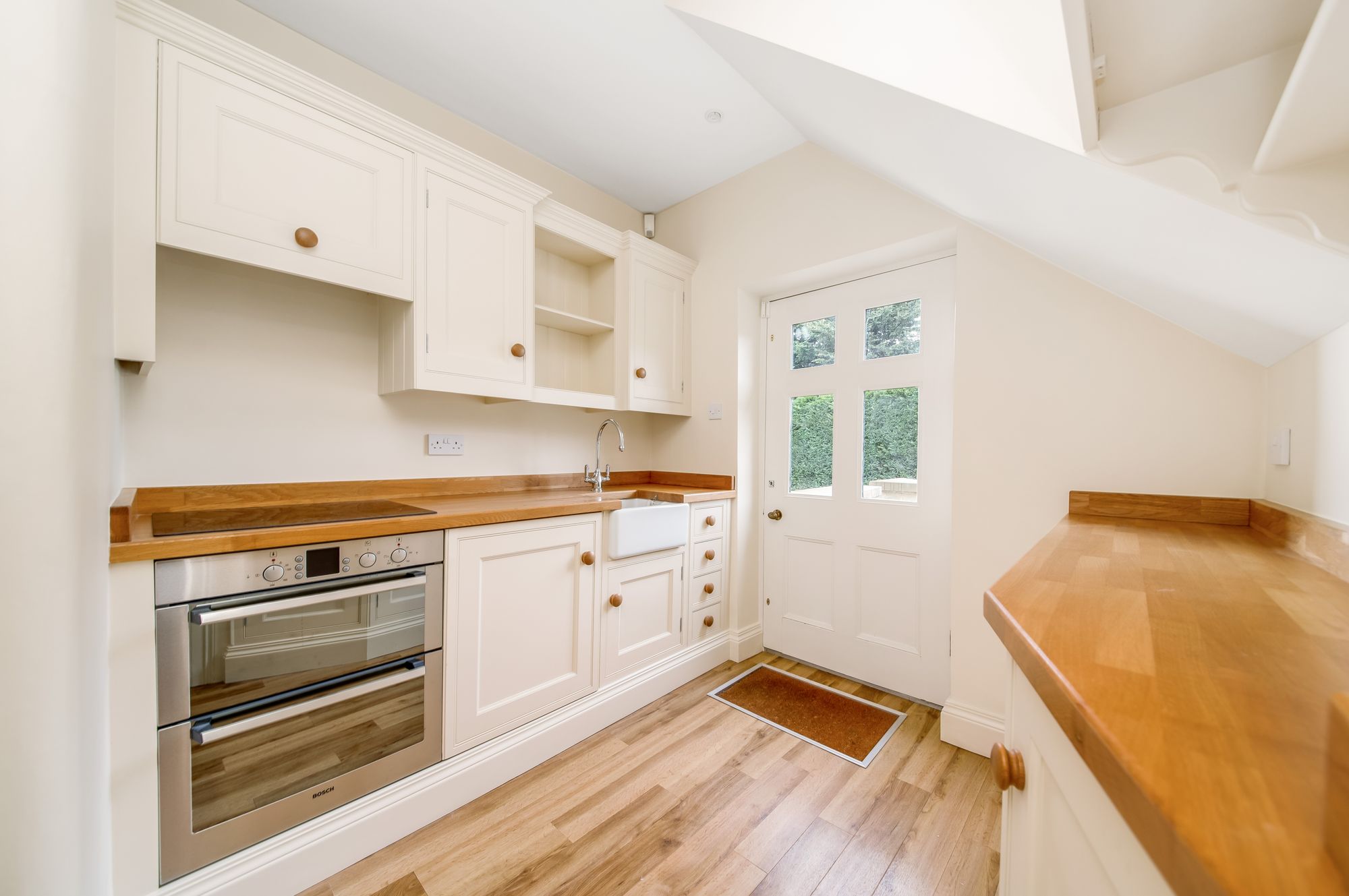 ANNEX KITCHENBringing your attention to the floorplan, we would like to demonstrate here that a combination of bedroom six and bedroom four provides two en-suited bedrooms that can be separately accessed, but also separately divided, from the other accommodation. There is an external side entrance door (see floorplan) with beautiful stone steps leading up to a small landing where a door gives access to a kitchen.