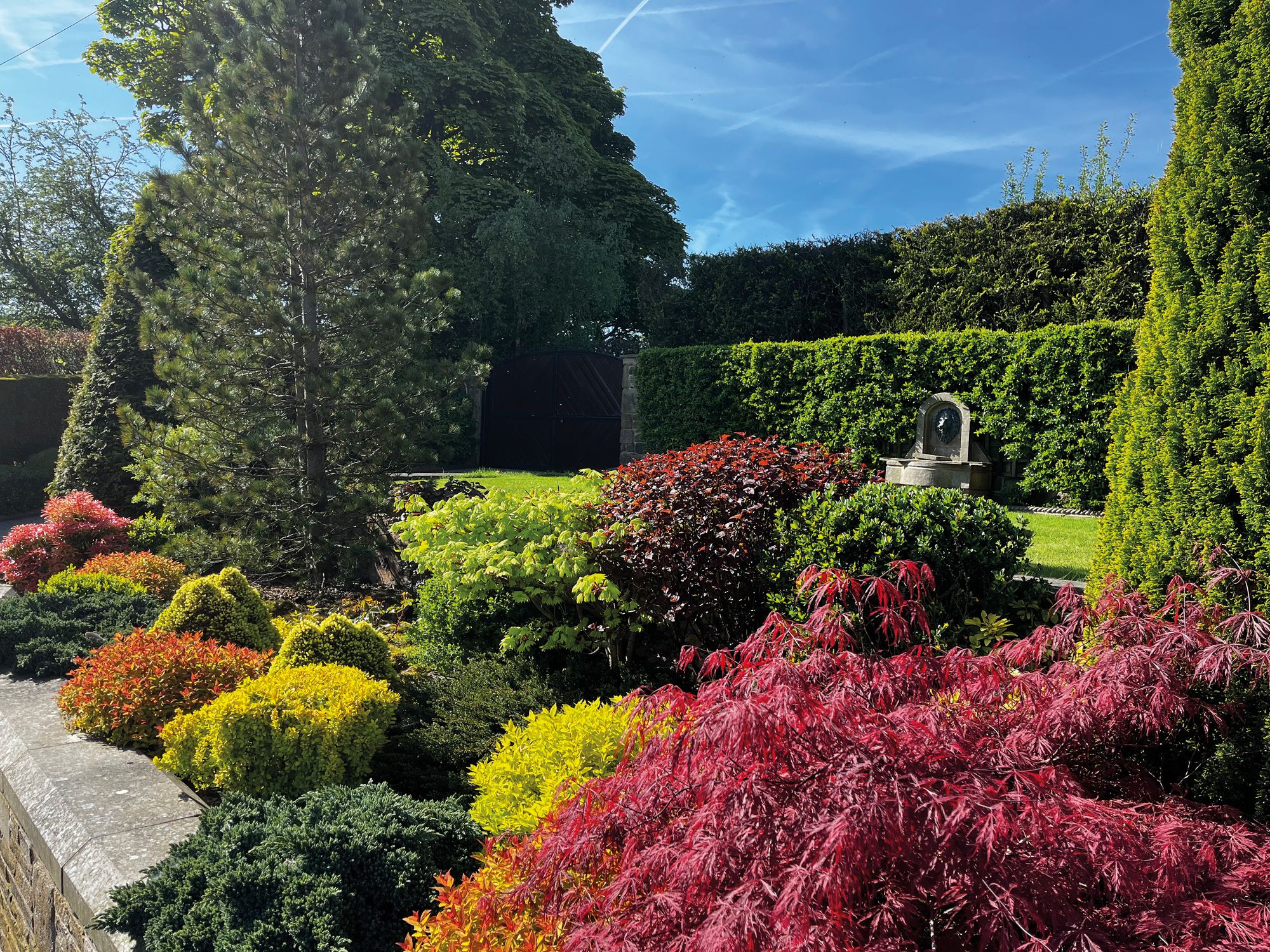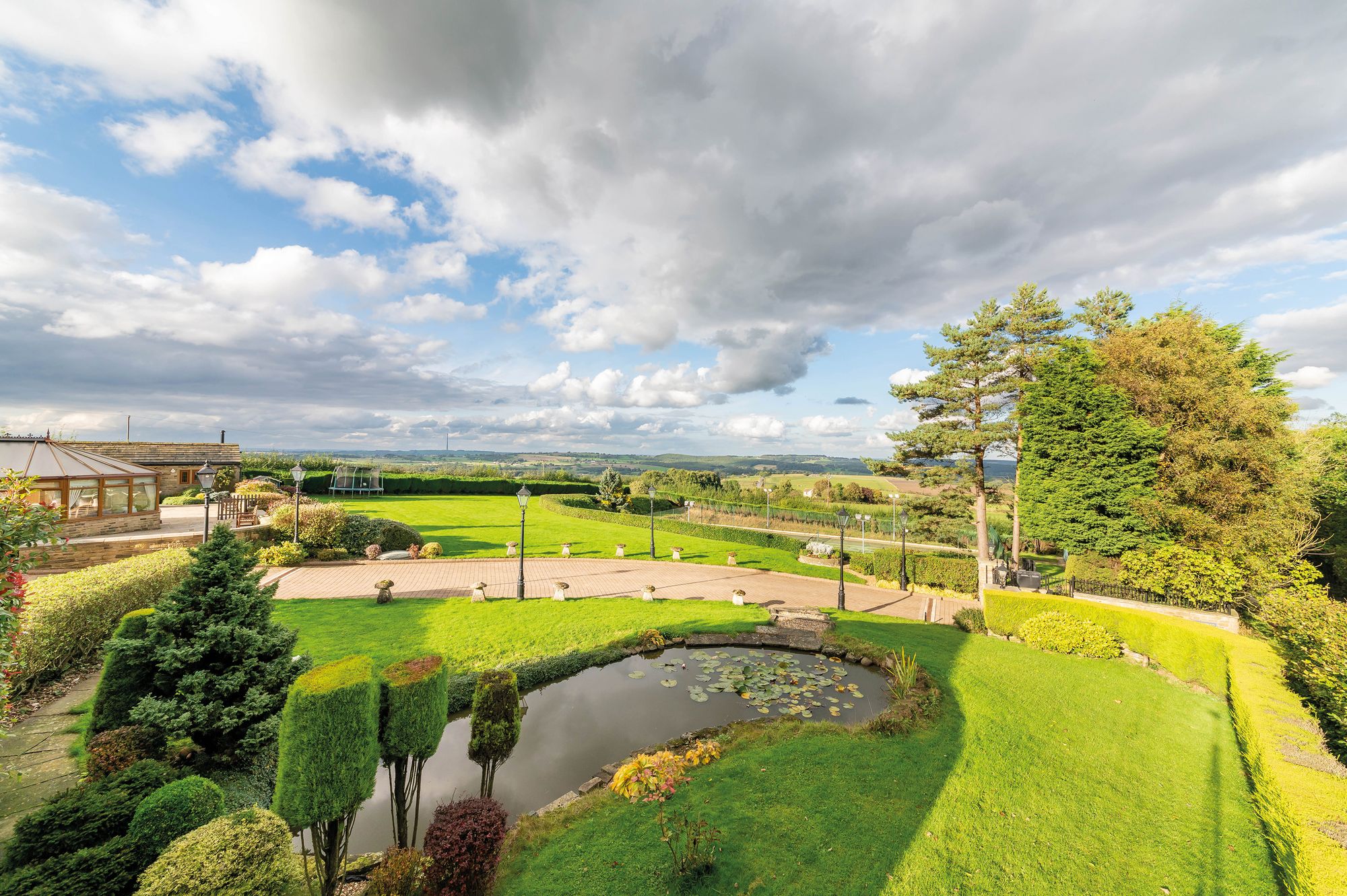EXTERIOR – THE GARDENSThe gardens have been beautifully landscaped and are very well presented. Raised planting areas, containing mature trees and shrubs, surround the back courtyard garden and at the front of the property have been designed to be low maintenance. There are multiple stone-flagged terrace areas for sitting, complemented by wonderful, large, stone garden features, bringing together the outstanding gardens that complete this rural home superbly. The gardens and terraced areas benefit from a stylish external W.C. To the front of the property is a delightful large pond, where four koi carp live. The planting, shrubbery and terraced seating area make the pond a beautiful feature of the garden. A gravel pathway leads down to the tennis court and a viewing area. This hard-surfaced, flood-lit, enclosed tennis court is a fabulous feature of the property