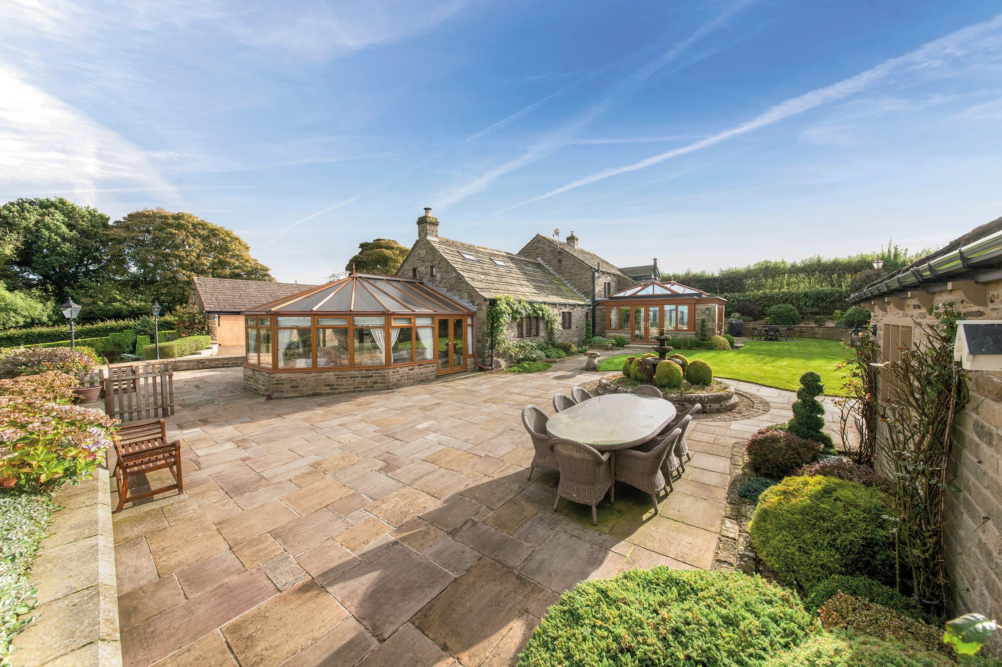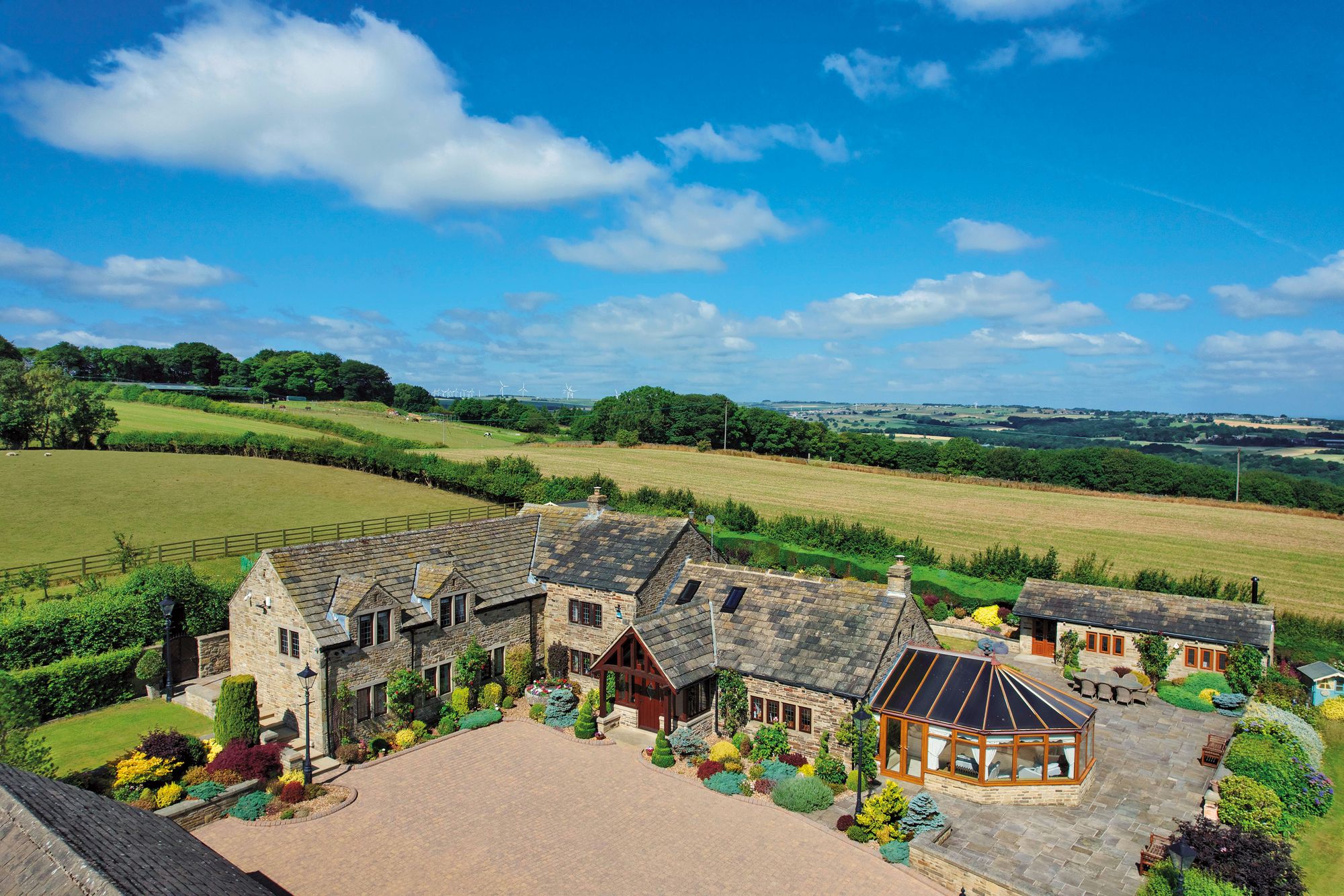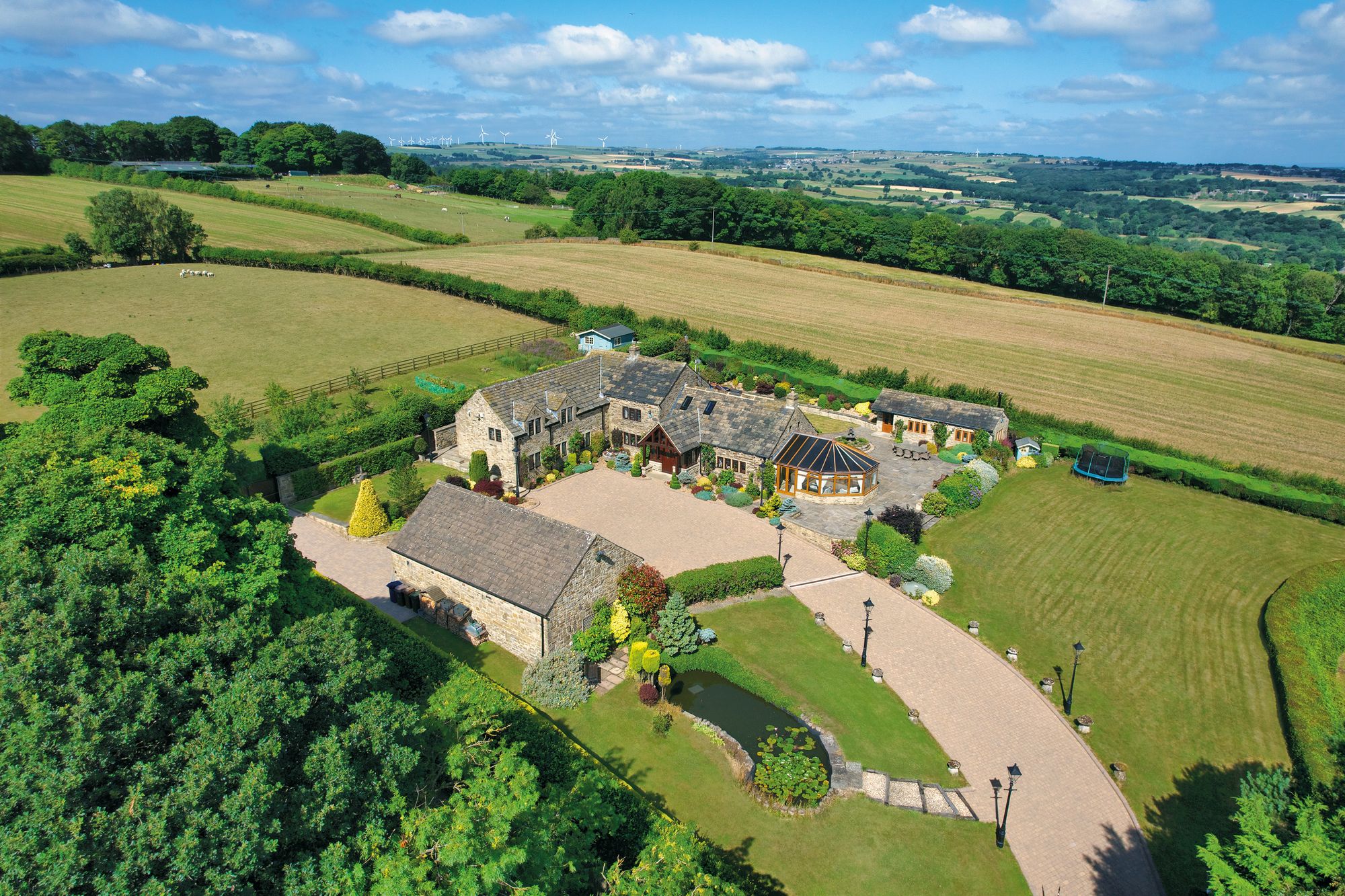 A MAGNIFICENT FIVE-BEDROOM FAMILY HOME IN A RURAL LOCATION WITH BREATHTAKING VIEWS, GATED AND SET BEHIND HIGH STONE WALLS, THIS INCREDIBLY DISCREET, PRIVATE PROPERTY IS LOCATED BETWEEN CAWTHORNE VILLAGE AND PENISTONE. A RESTORED, STONE BUILT FORMER FARMHOUSE, THIS IS A WONDERFUL, RURAL, FAMILY HOME WITH STUNNING VIEWS OVER THE VALLEY AND BEYOND. SET IN APPROXIMATELY TWO AND A HALF ACRES, IT HAS A FABULOUS COMBINATION OF FORMAL GARDENS, ORCHARD, PADDOCK, AND FLOODLIT TENNIS COURT. THE OUTBUILDINGS CONSIST OF A LARGE, DETACHED STUDIO/HOME OFFICE AND A SUBSTANTIAL DETACHED TRIPLE GARAGE BLOCK. THE HOUSE SITS PROUDLY IN AN ELEVATED POSITION, CENTRAL WITHIN ITS GARDENS AND GROUNDS. IT IS WELL APPOINTED WITH FIVE BEDROOMS AND A HUGE AMOUNT OF VERSATILE LIVING SPACE. BEHIND IMPRESSIVE ELECTRIC GATES, THE PROPERTY IS APPROACHED VIA A SWEEPING BRICK-PAVED DRIVE ARRIVING AT A FRONT COURTYARD. IT HAS A GRAND OAK BEAMED AND GLASS ENTRANCE WITH A BESPOKE OAK DOOR.