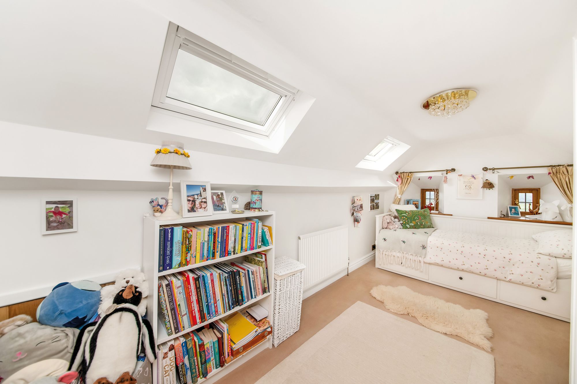 BEDROOM THREEA delightful room with two charming mullioned windows giving fabulous views of the gardens and views over the valley. There are two Velux windows to the roof line, built-in wardrobes and under-eaves storage cupboards to either side.