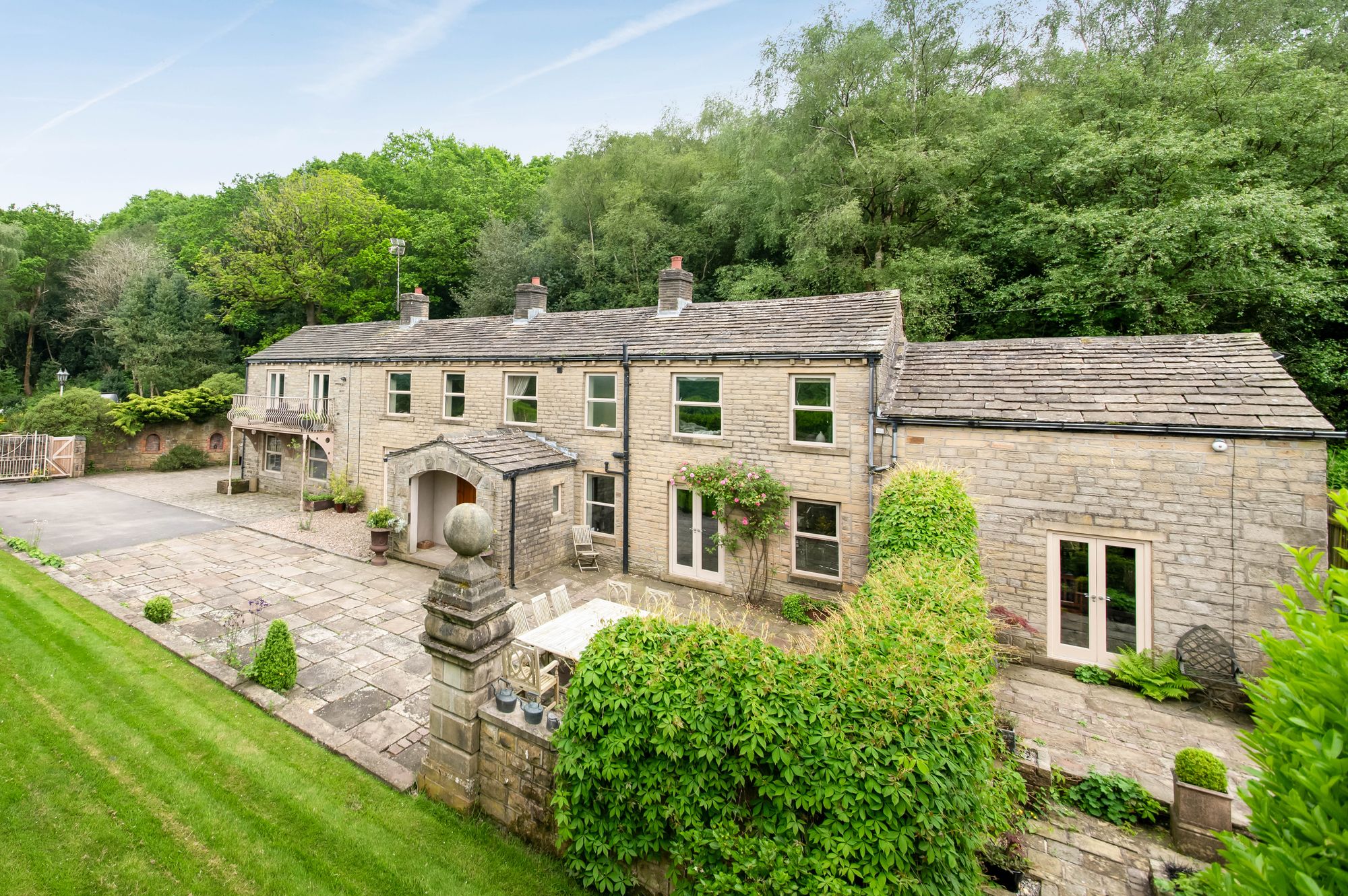 SET IN A DELIGHTFUL LOCATION TOWARDS THE END OF A COUNTRY LANE AND ENJOYING A SUPERB VIEW. THE DETACHED, SPACIOUS HOME HAS ACCOMMODATION THAT IS SURE TO PLEASE. THERE IS A DELIGHTFUL FORMAL GARDEN TO THE FRONT AND A GOOD-SIZED DRIVEWAY WITH WONDERFUL RURAL WALKS CLOSE AT HAND, ONE SUCH WALK BEING THROUGH THE WOODLAND TOWARDS THE VILLAGE OF HONLEY, AND MELTHAM IS JUST A SHORT WALK AWAY. The accommodation is spectacular and briefly comprises; superb large entrance hall, good sized dining kitchen, spectacular double height dining room / second sitting room, large sitting room, superb family room which is also used as a music room and occasionally as bedroom four, this is served by a w.c. First floor landing, Bedroom one with en-suite and dressing room, Bedroom two a good-sized double room, Bedroom three once again, a good-sized room and house bathroom. Please note scope exists to create a further bedroom on the first-floor level by taking away some of the height above the dining room on the ground floor. Many special features are here, including the wonderful outlook, the delightful garden, the balcony enjoying the long-distance views from bedroom one, and a tremendous setting in between these two welcoming villages. There are three plots of land that can be purchased by separate negotiation-please see plan.