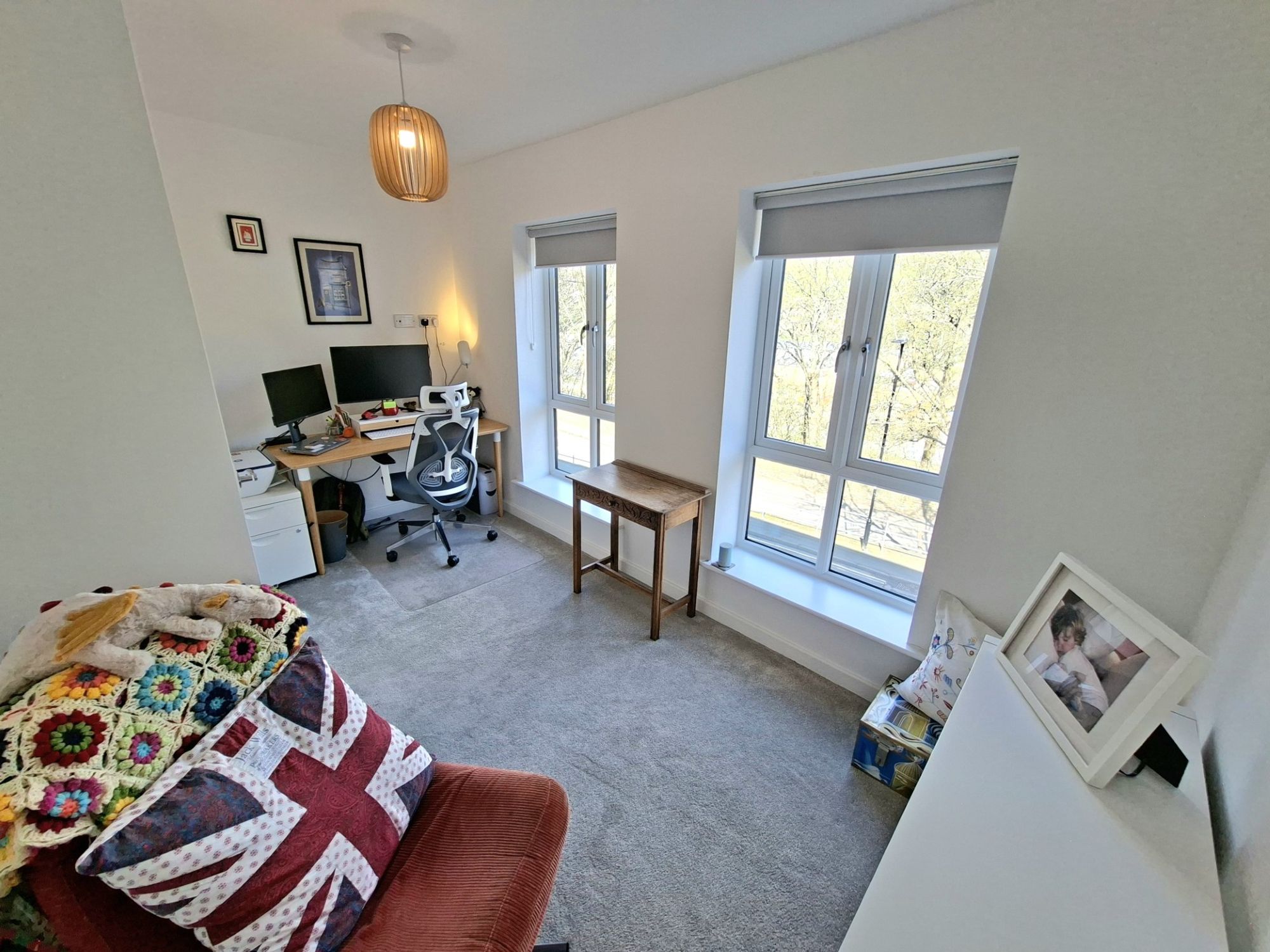 BEDROOM THREEThe third double bedroom is located to the front of the first floor with room for freestanding or fitted wardrobes to be installed. There are good views and great natural light.