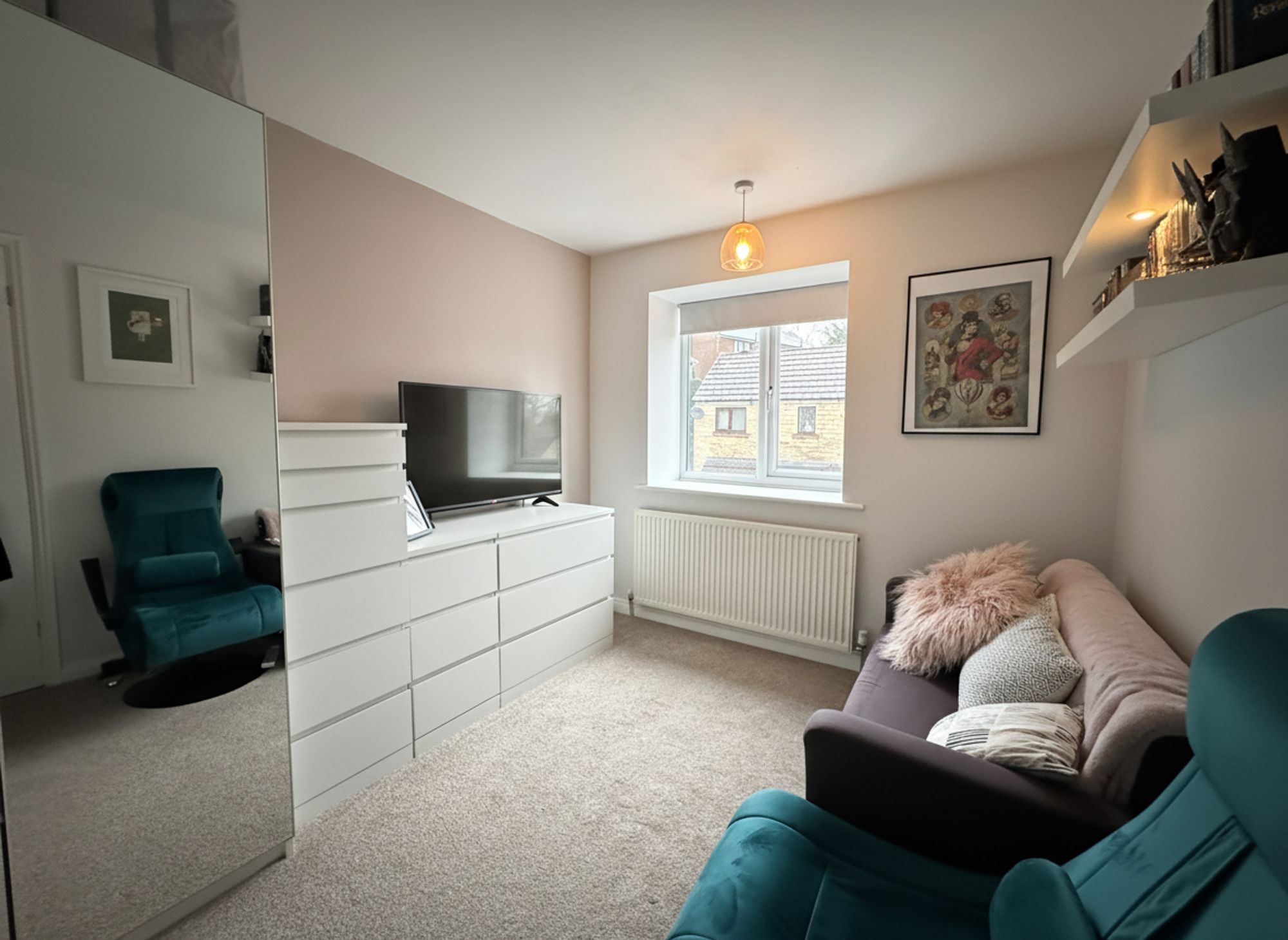 BEDROOM THREECurrently used as an office, positioned to the rear of the property, with a ceiling light, central heating radiator, and a uPVC double-glazed window to the rear elevation.