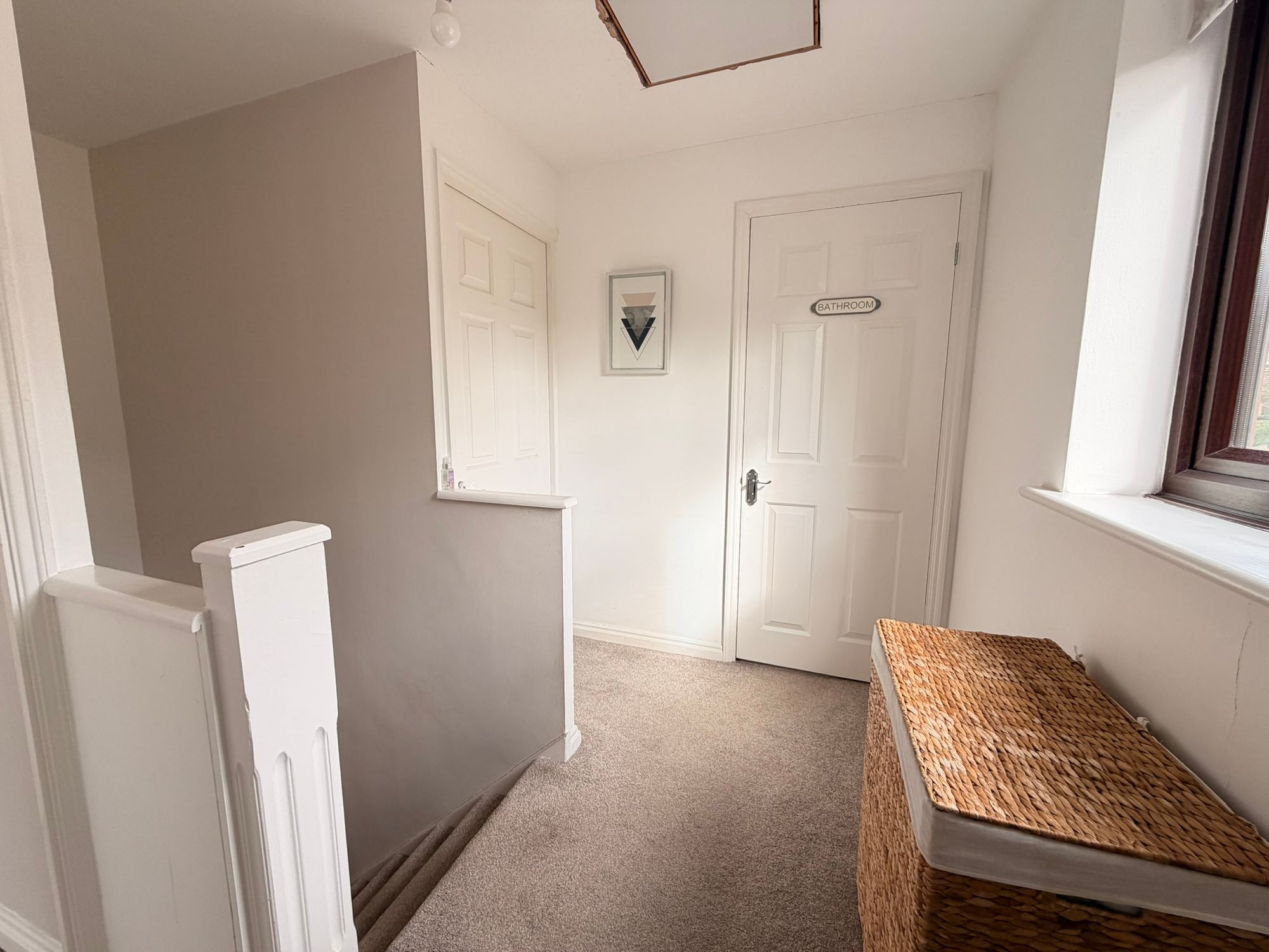 FIRST FLOOR LANDINGWith a ceiling light, uPVC wood-effect double-glazed window to the side, and loft access via a hatch. From this landing, access is gained to the following rooms: