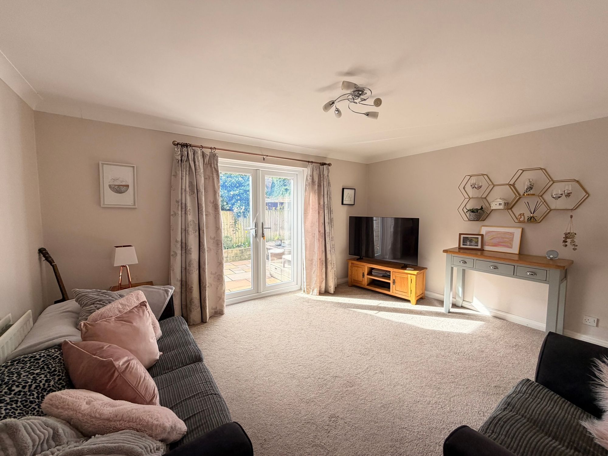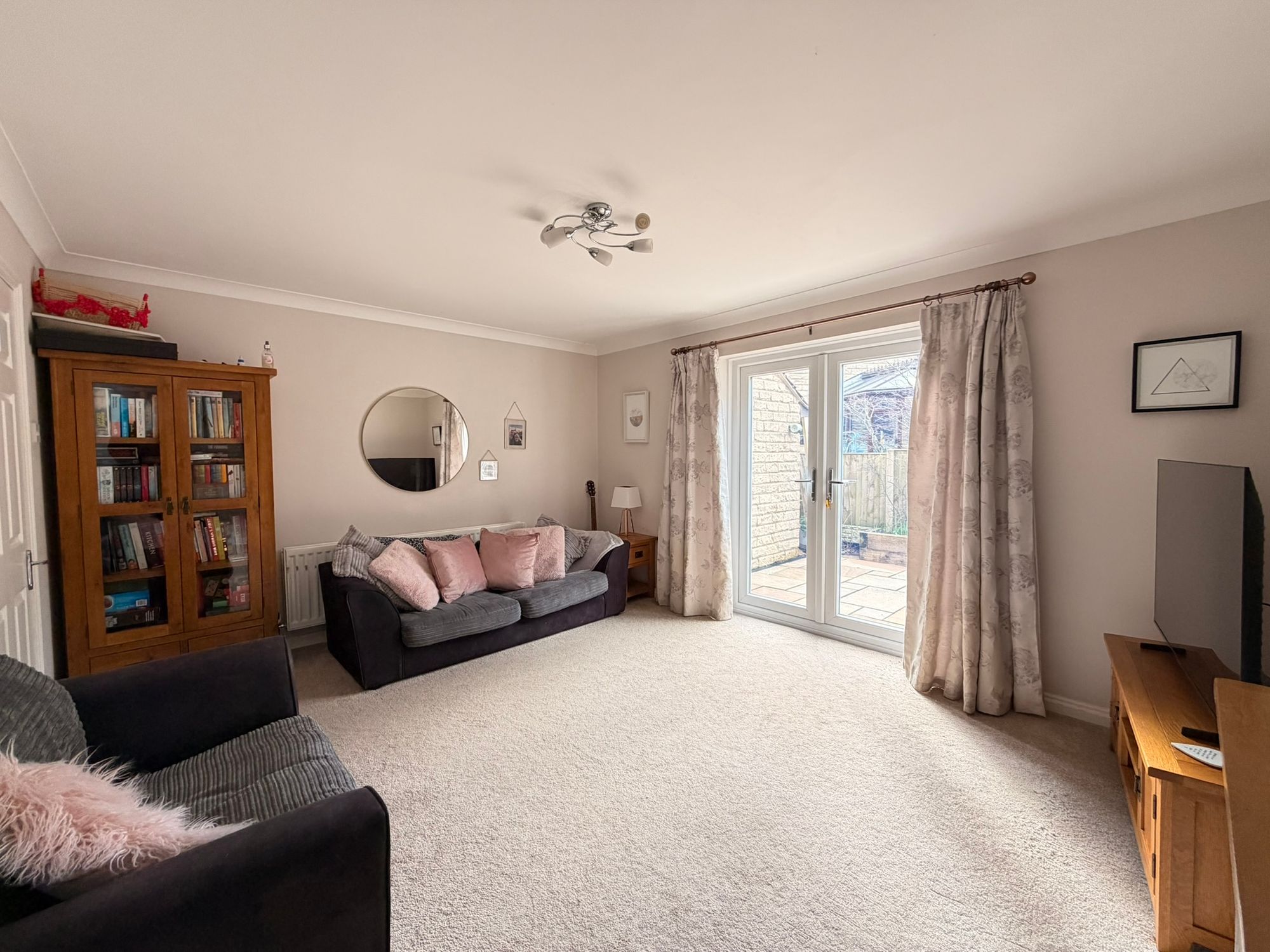 LIVING ROOMFrom entrance hall, we access to the living room. This is a well-proportioned rear-facing reception room enjoying direct access to the garden via uPVC twin French doors, allowing good levels of natural light. The room further benefits from a ceiling light point, coving to the ceiling, a central heating radiator, and a spindle staircase rising and turning to the first-floor landing.