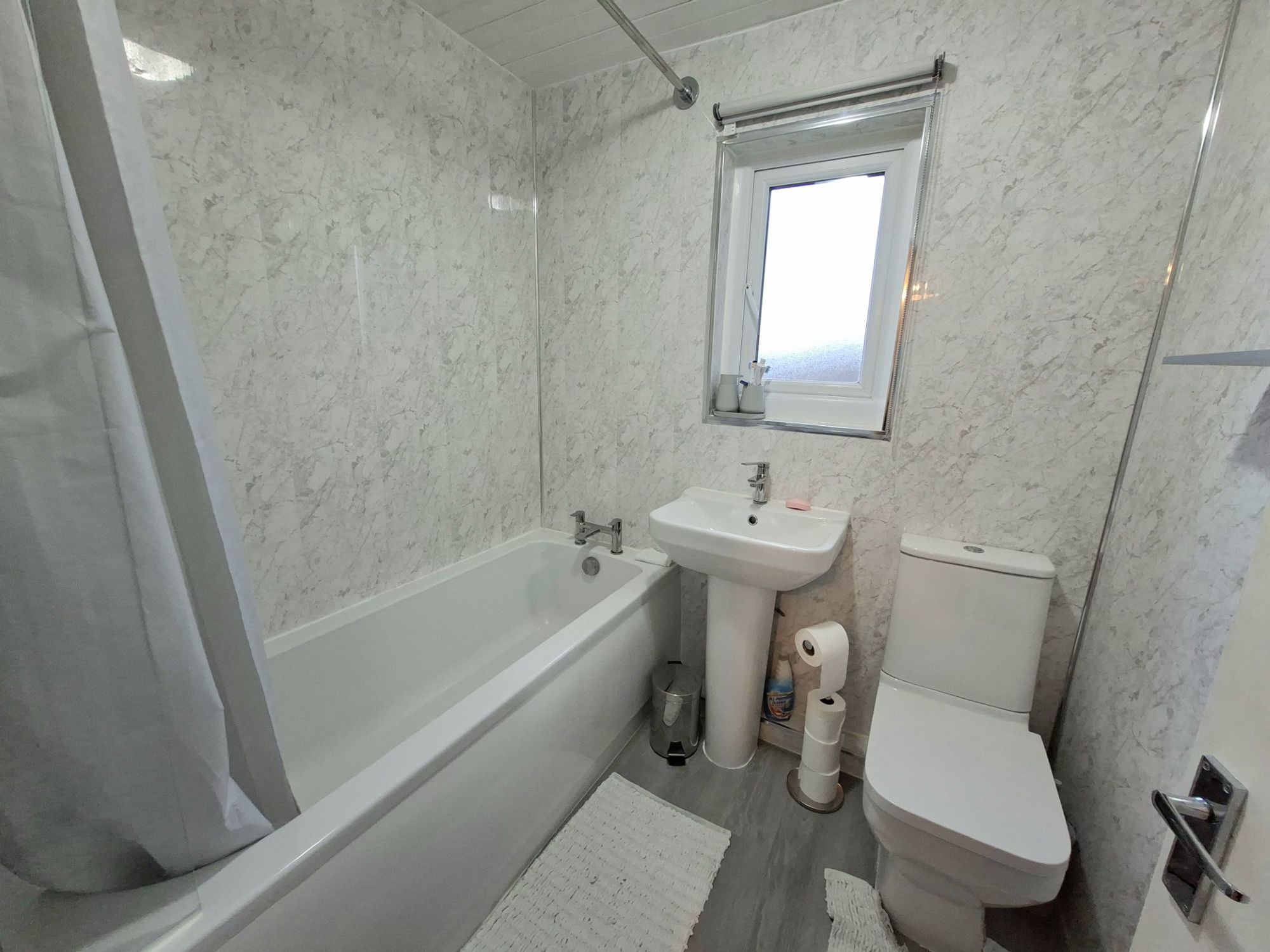 FAMILY BATHROOMThis very well presented family bathroom is modern in style with a three piece bathroom suite and an electric shower over the bath.