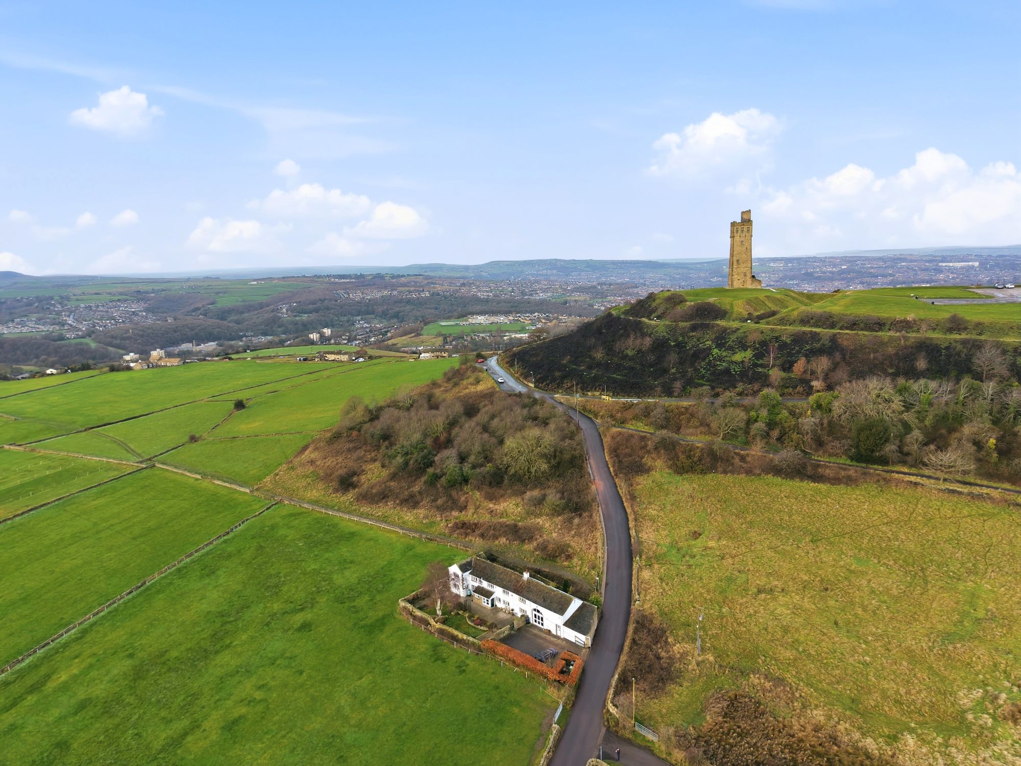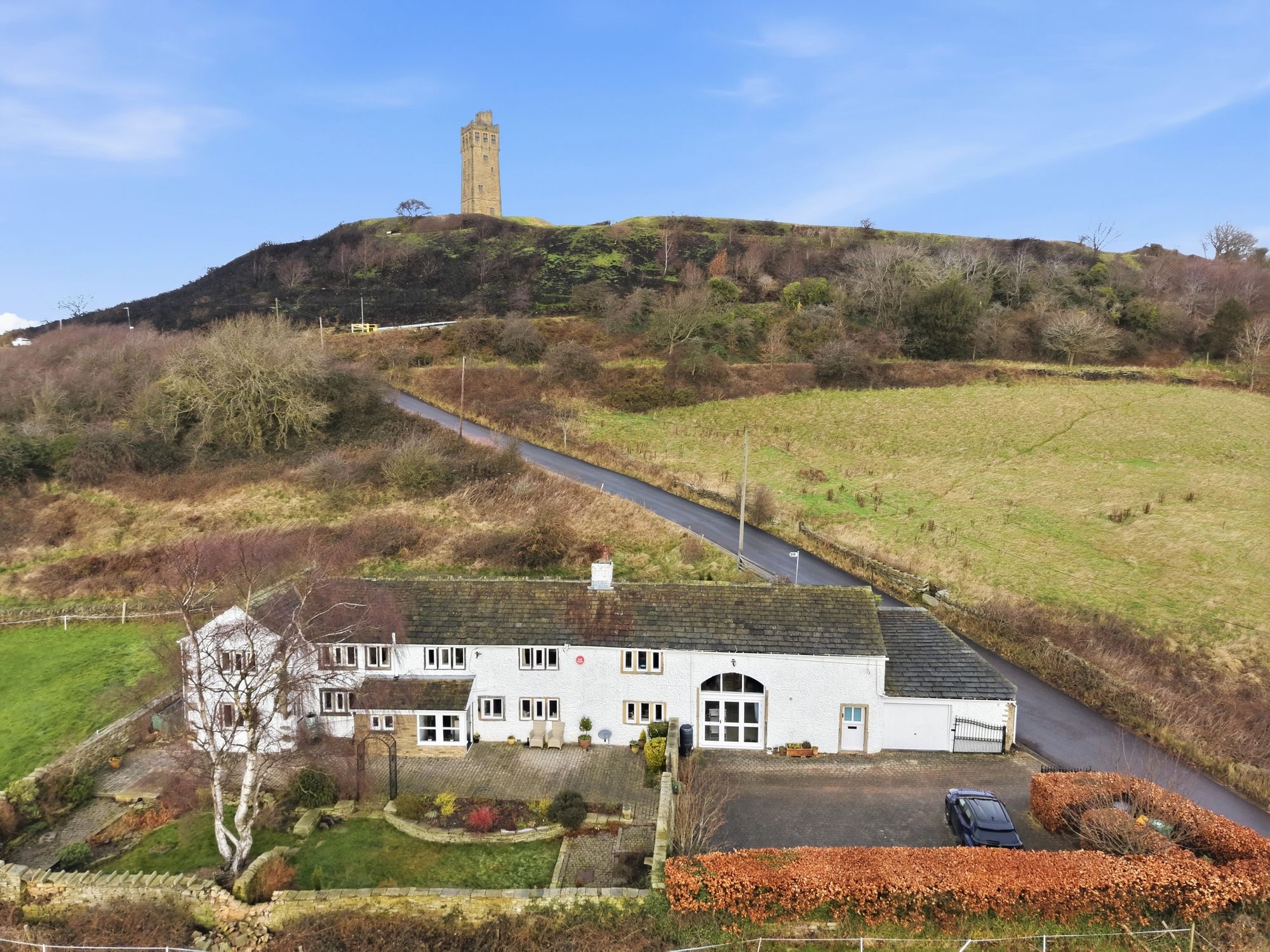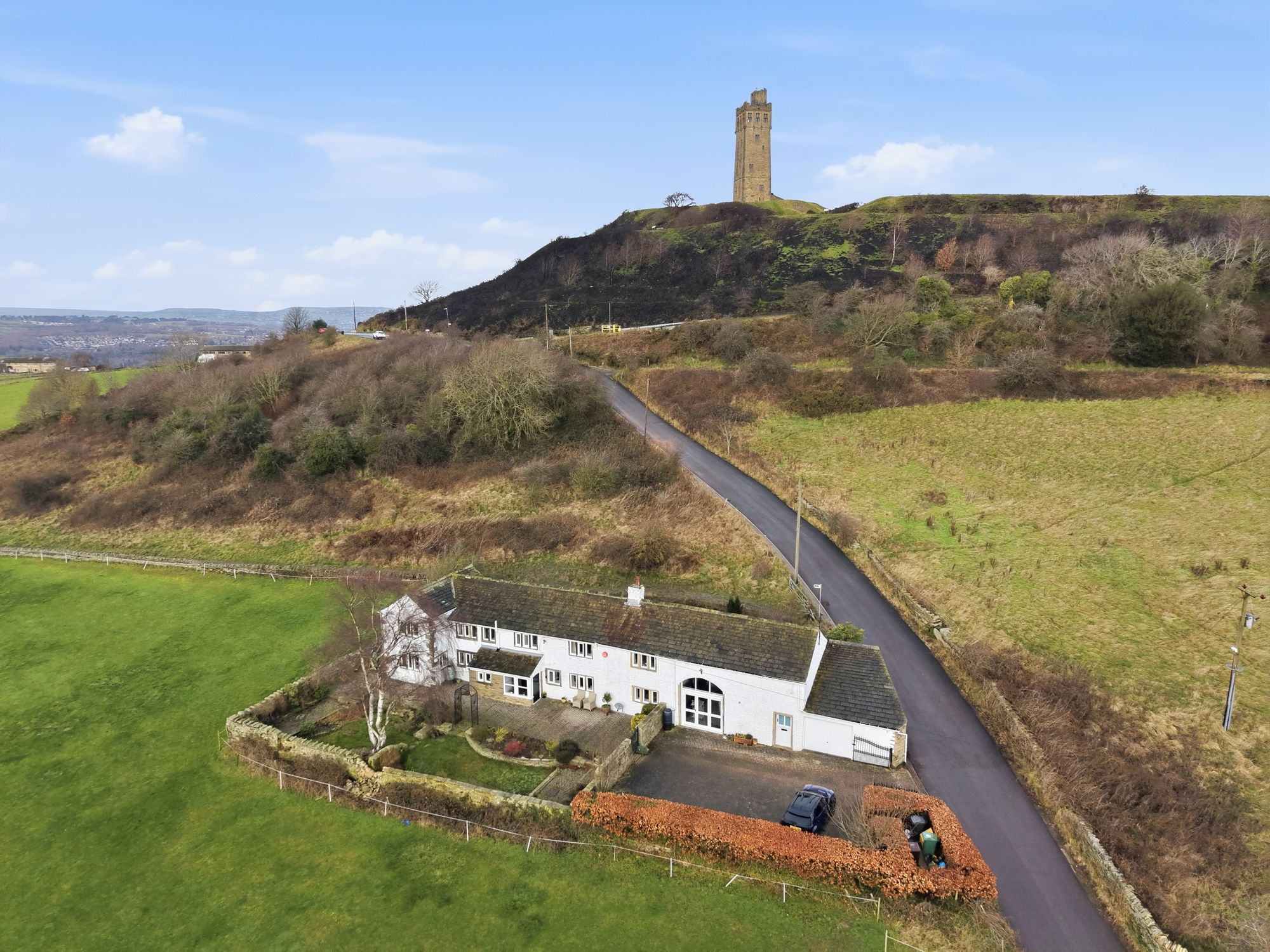 Standing at the foot of Victoria Tower with stunning uninterrupted views over the Woodsome Valley and beyond is this detached grade 2 listed character residence with adjoining barn and garage. This wonderful family home provides a generous level of accommodation with further potential to extend into the barn subject to PP and listed building consent. There is gated parking for several cars and gardens laid out to the front to enjoy the wonderful scenery. With a gas central heating system and timber sealed unit double glazing the ground floor comprises entrance porch, reception hall, downstairs w/c, living room, sitting room, dining room, kitchen, utility room and barn (23 x 17’6). First floor landing leading to 4 double bedrooms (master en-suite), bathroom and separate w/c.