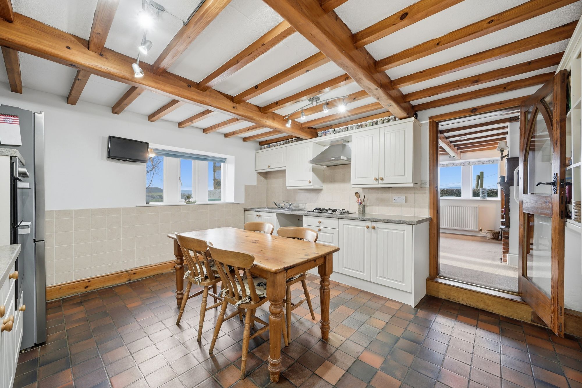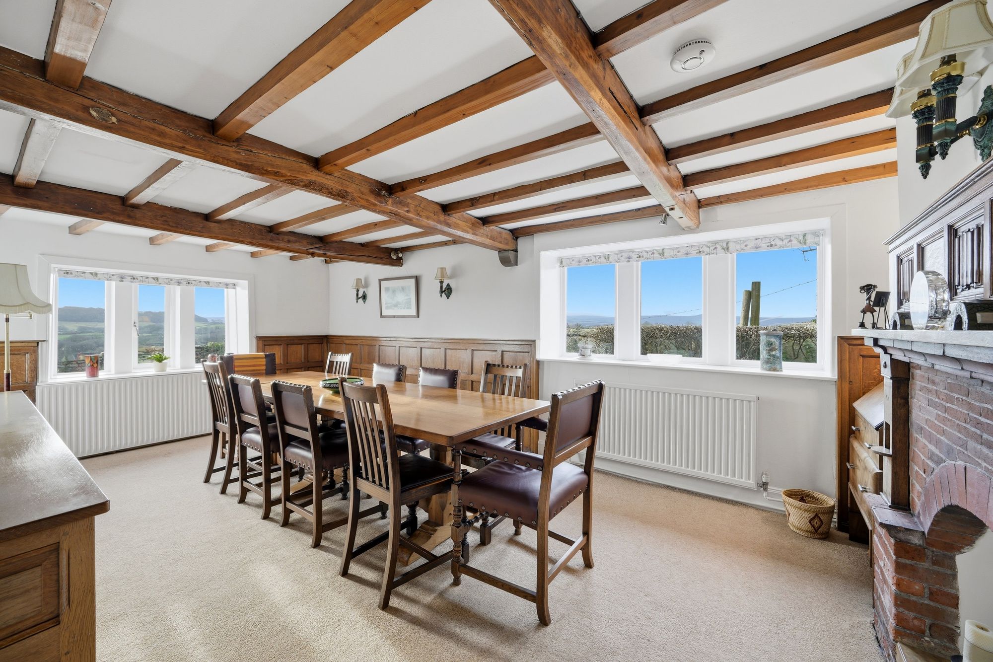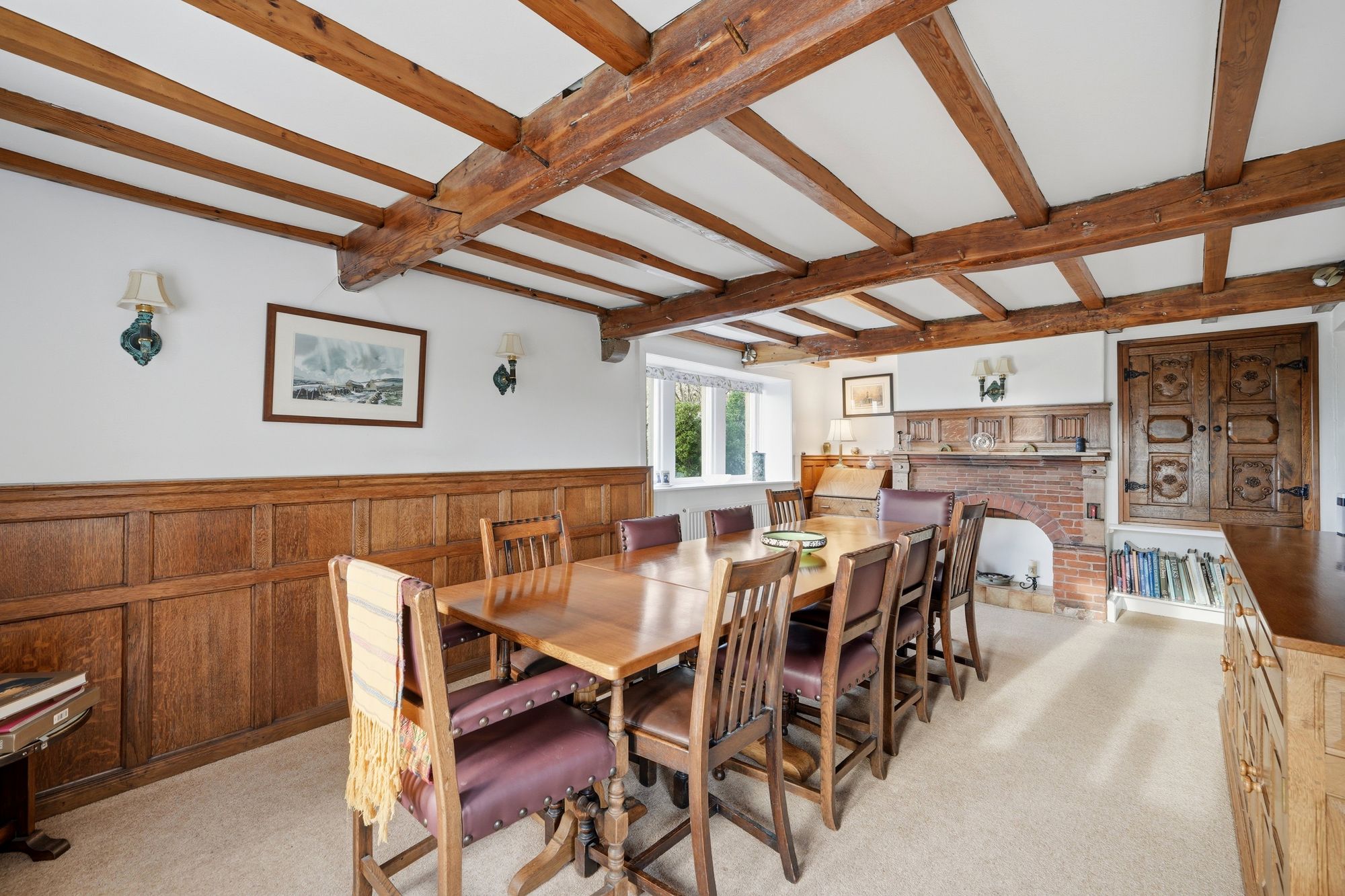 This is situated adjacent to the kitchen and has triple aspect sealed unit double glazed windows with views to the front and side elevation over surrounding countryside, there is a beamed ceiling, partially oak panelled walls, central heating radiator, three wall light points. As the main focal point of the room there is a decorative brick fireplace with carved oak mantle over and to the right-hand side of the fireplace there is a lovely carved oak storage cupboard with bookshelf beneath.