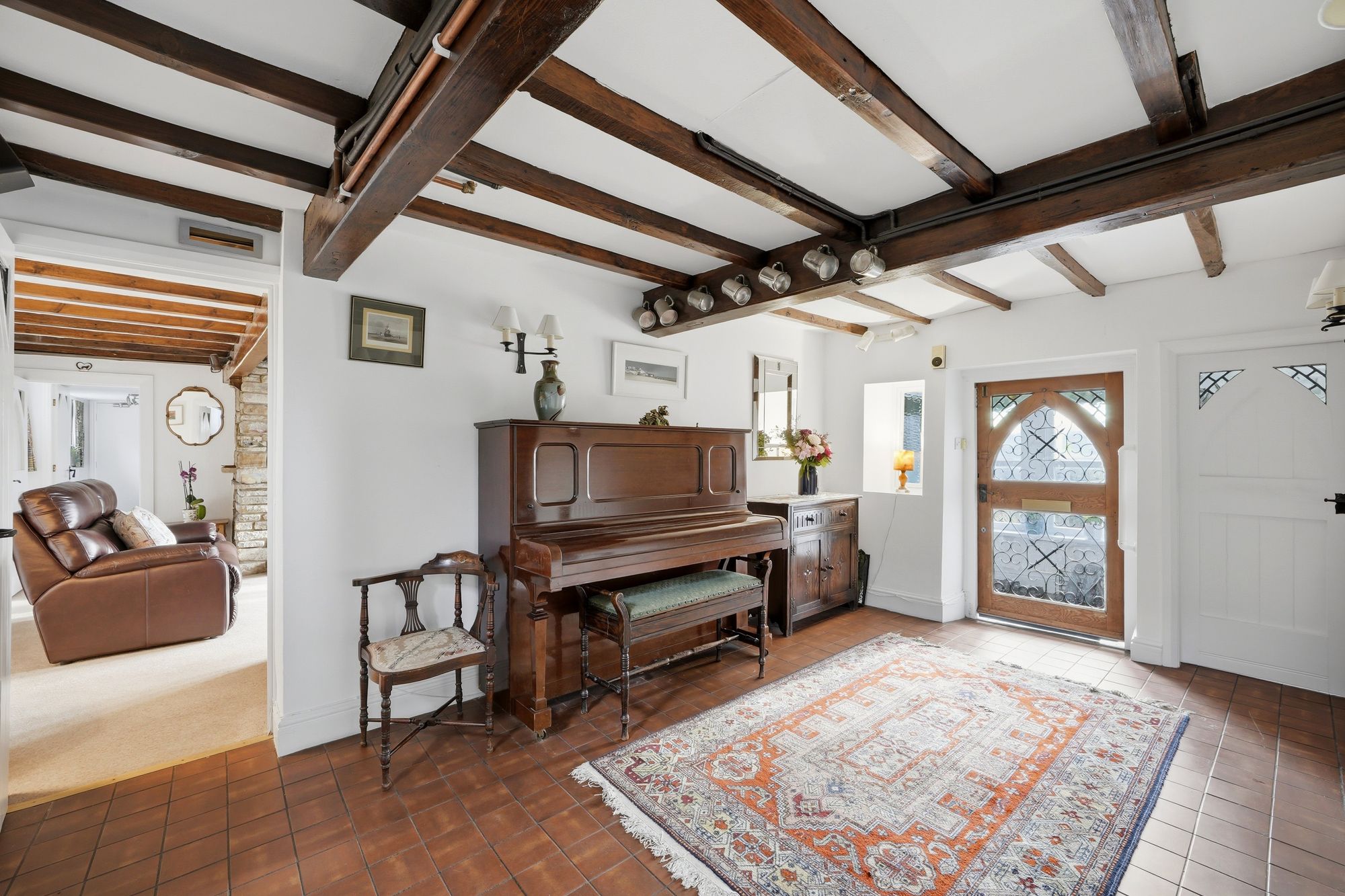 With timber sealed unit double glazed windows, timber entrance door, quarry tiled floor, ceiling light point and from here a timber and leaded glazed door with wrought iron detail opens into the reception hall.