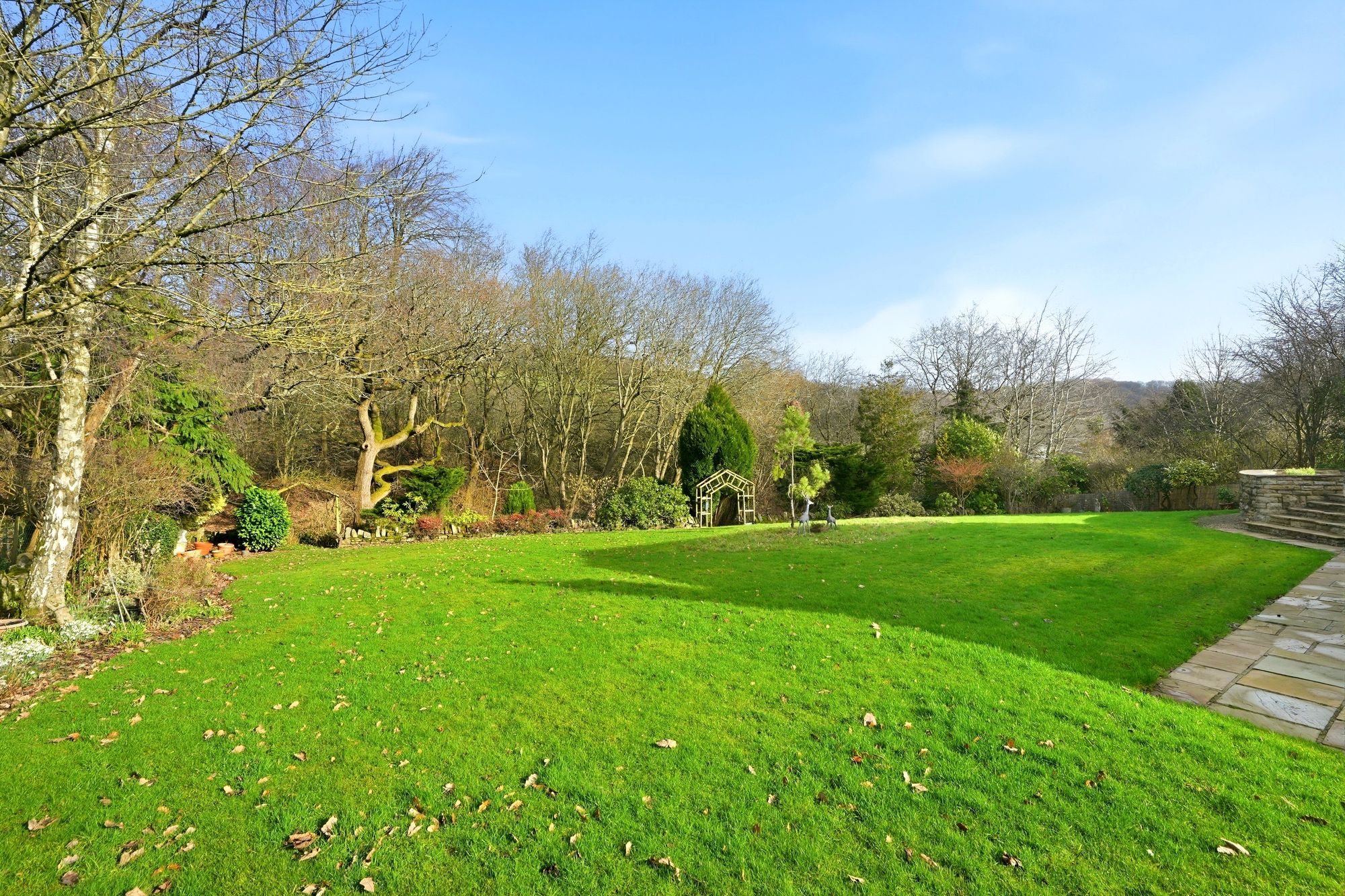 The property stands in just over 0.4 of an acre, with parking and detached double garage to the front and gardens laid out to the side and extending across the rear. A fabulous semi-rural location, yet just minutes from Junction 24 of the M62 and neighbouring Lindley’s shops, restaurants and bars.