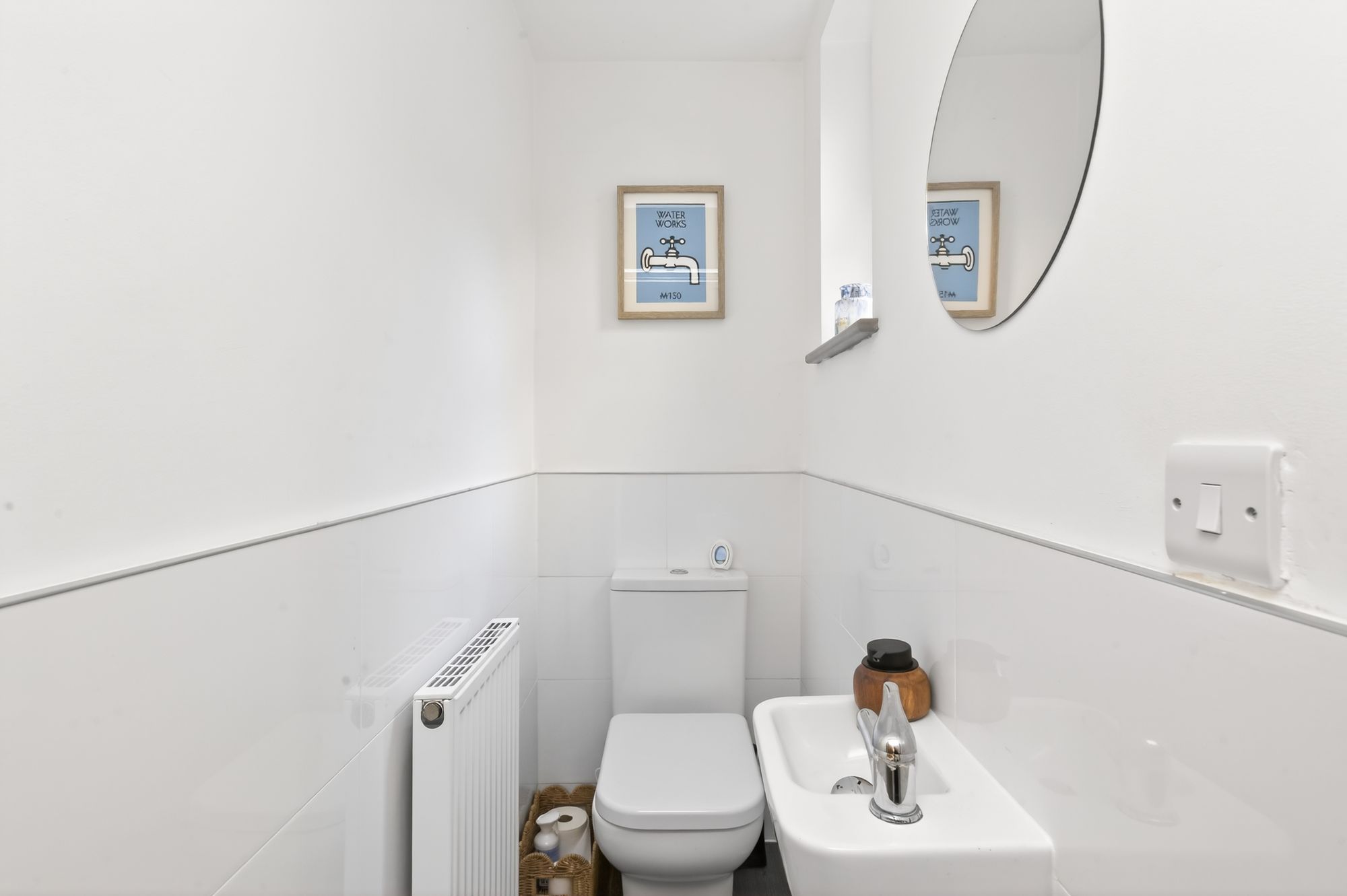 The downstairs WC is fitted with a low level WC and wash hand basin, spotlighting to the ceiling, an extractor fan and a window.
