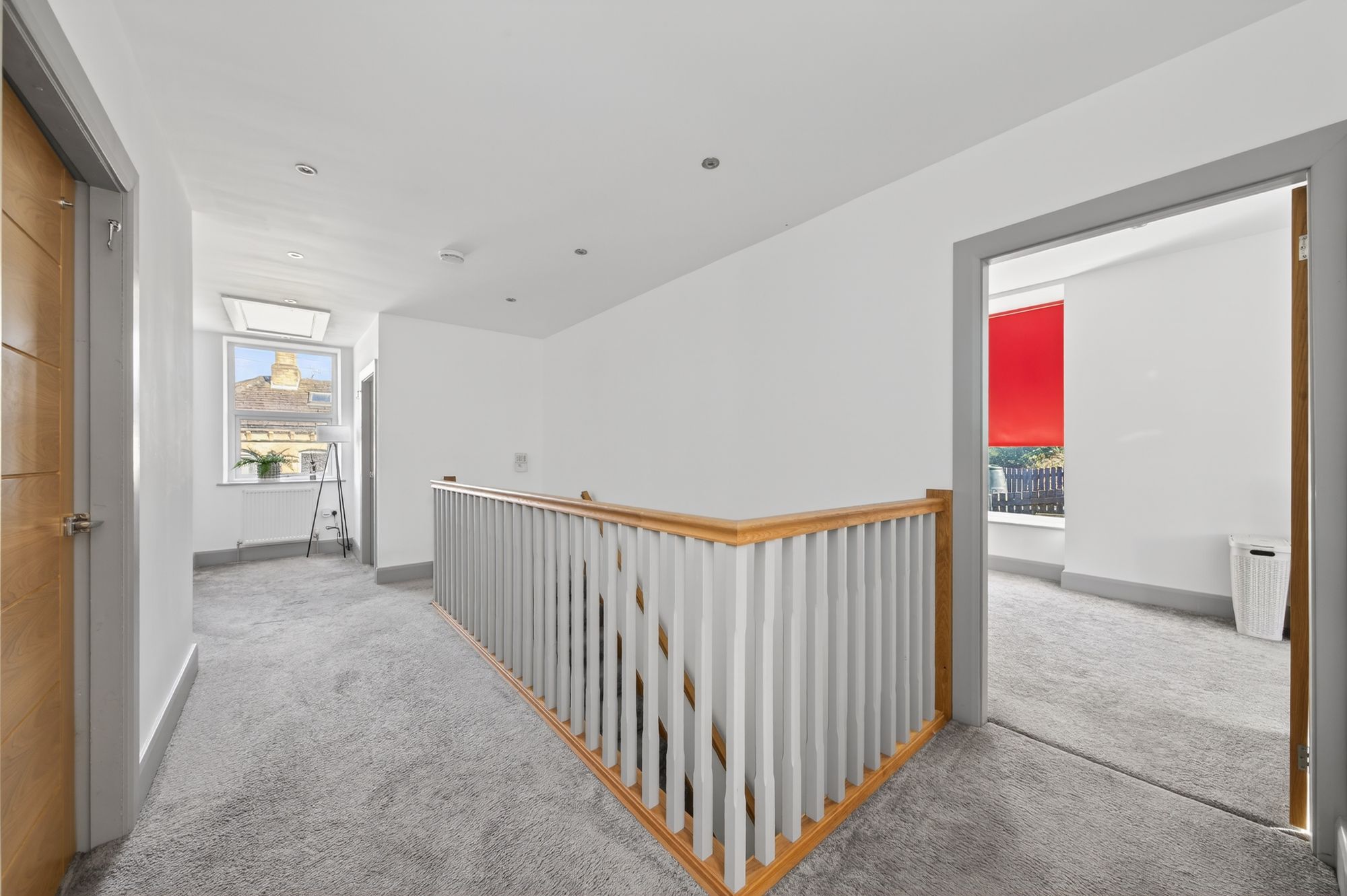 A particularly broad staircase with timber hand rail and spindle balustrading rises up to the first floor landing, which is of a particularly good size and has inset spotlighting to the ceiling, and a window giving a pleasant outlook to the front. Additionally, there is a loft access point with a fold-away ladder giving access to the exceptionally spacious attic with original floor boarding which provides a huge amount of space for storage, hobbies, etc.