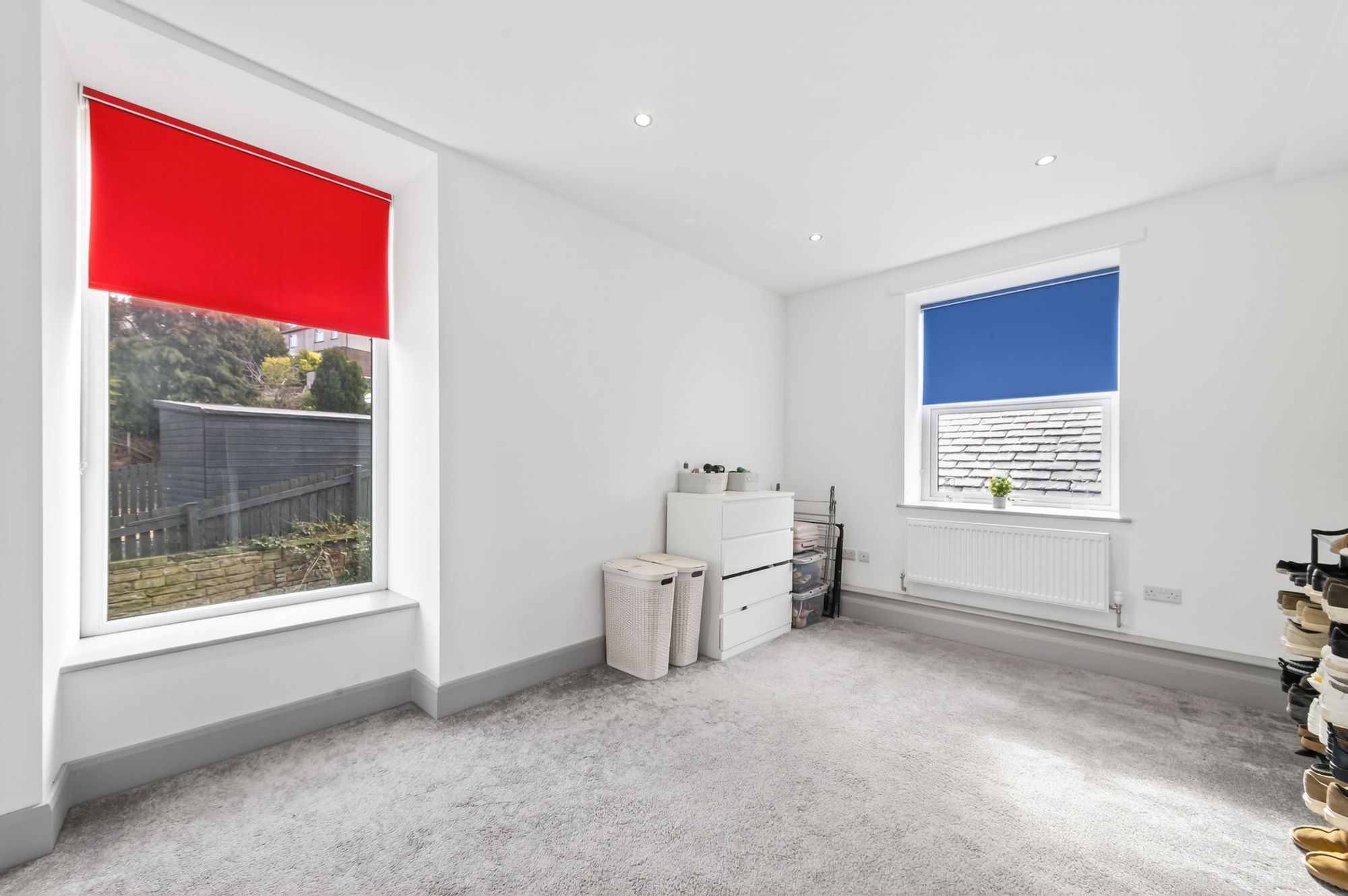 Bedroom two is, once again, a double room offering a pleasant outlook over the village, with inset spotlighting to the ceiling.