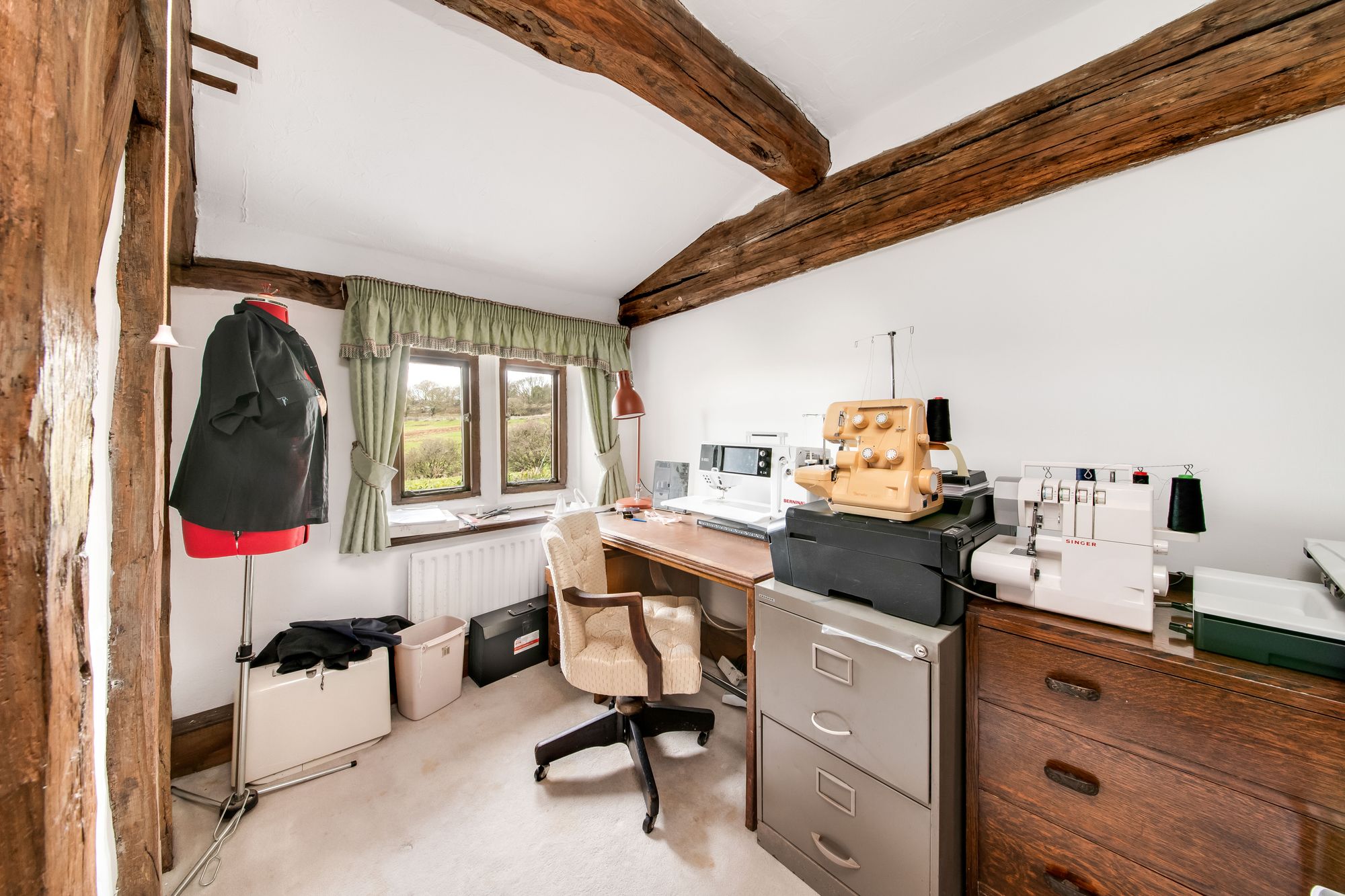 This has mullioned windows looking out across open countryside, there is a beamed ceiling and partly exposed timbers.