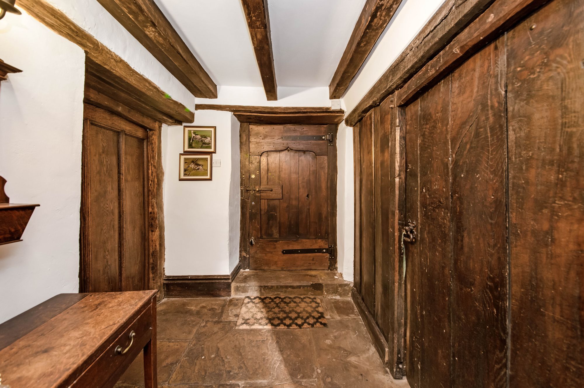 This has a lovely timber braced entrance door, there is a beamed ceiling, stone flagged floor and from the hallway gives access to the following: -