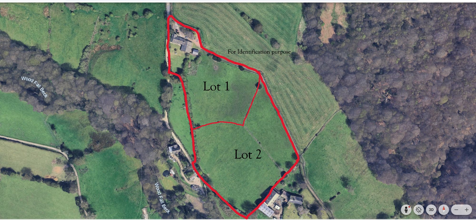 To be sold in two lots. Lot 1 farmhouse and barn with gardens and fields of circa 3 acres, offers around £950,000