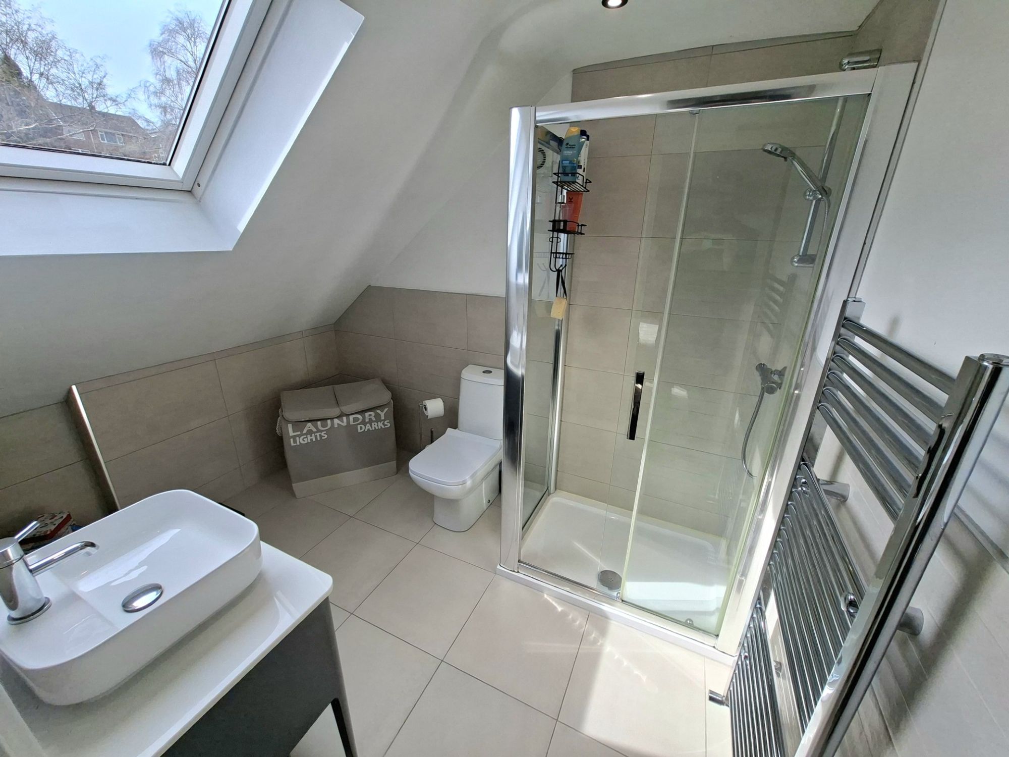 MASTER BEDROOM AND ENSUITE SHOWER ROOMThe top floor master bedroom is a fantastic size double bedroom with great natural light via three Velux windows as well a large ensuite shower room
