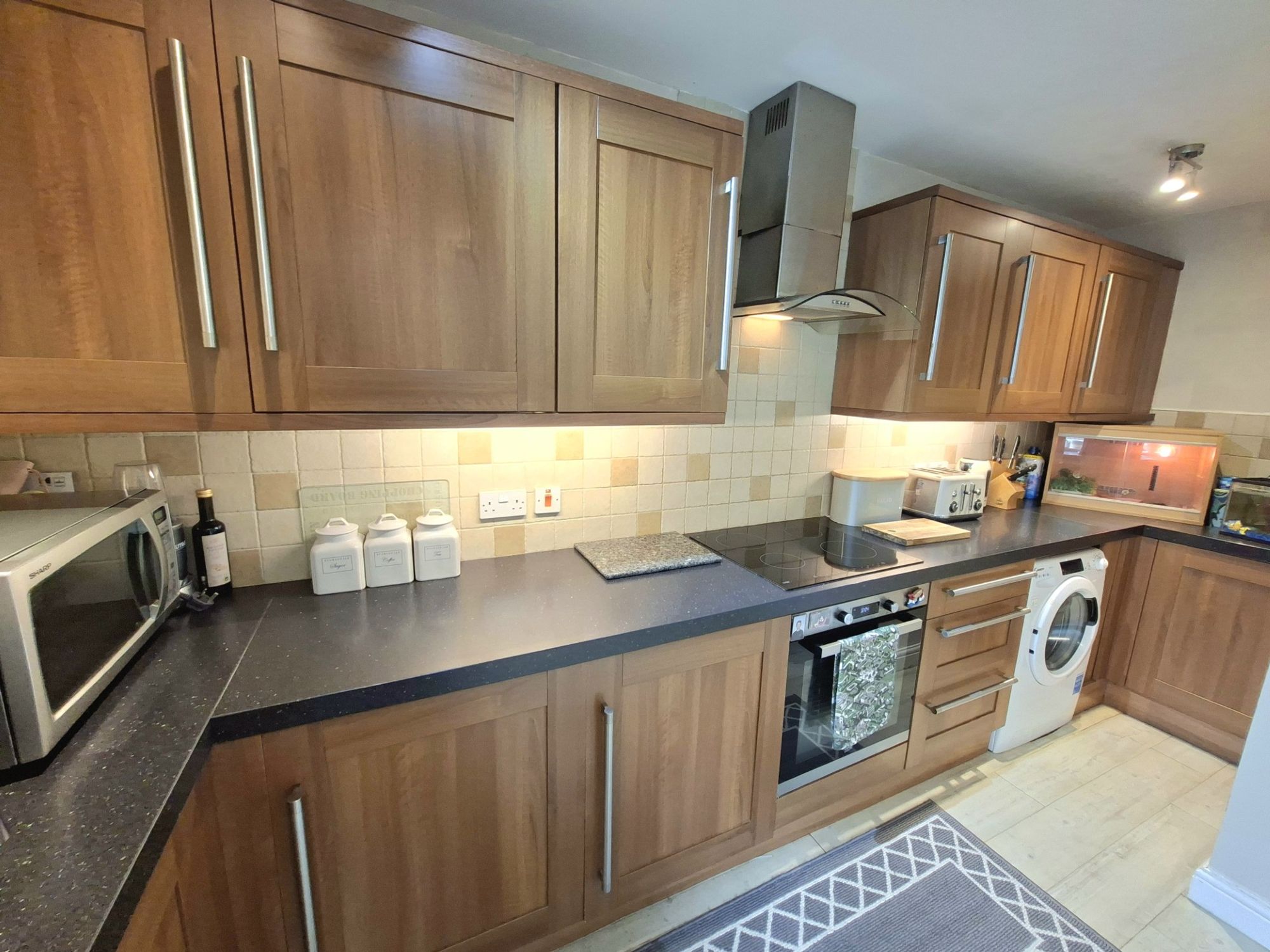 This is a great family kitchen, ideal for modern living with ample countertop and cupboard with some integral appliances.