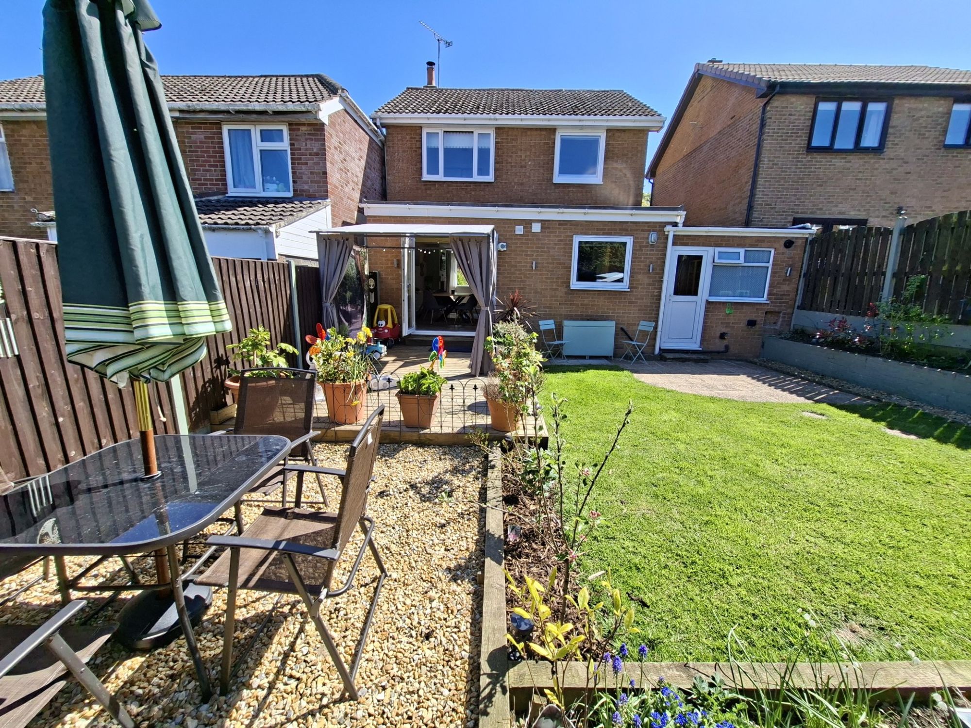 THIS THREE BEDROOM DETACHED FAMILY HOME NEEDS TO BE VIEWED EARLY TO AVOID DISAPPOINTMENT. THE GROUND FLOOR IS CREATED FOR MODERN FAMILY LIFE WITH A LARGE OPEN LIVING ROOM (WITH LOG BURNER), KITCHEN AND DINING AREA THAT IS PERFECT FOR ENTERTAINING FAMILY & FRIENDS ESPECIALLY WITH THE ACCESS THE SUNTRAP OF A REAR GARDEN VIA SET OF FRENCH uPVC DOORS. THERE IS LARGE UTILITY ROOM ADJACENT TO THE KITCHEN WHICH IS ALL PLUMBED IN FOR WASHING MACHINE & TUMBLE DRYER AS WELL AS HAVE ACCESS TO BOTH THE REAR GARDEN AS WELL AS THE GARAGE. THE SUPERB LIVING SPACE CONTINUES UPSTAIRS WITH THREE DOUBLE BEDROOMS AND A STYLISH FAMILY BATHROOM WITH SHOWER OVER THE BATH AND MODERN FITTINGS. THE OUTSIDE OF THE PROPERTY DOES NOT DISAPPOINBT EITHER WITH OFF-STREET PARKING TO THE FRONT OF THE PROPERTY ENOUGH FOR TWW FAMILY SIZED CARS AND A STUNNING REAR GARDEN THAT IS IN EXCELLENT, EASY MAINTENANCE CONDITION WITH A LAWNED AREA, DECKED SPACE WITH SUNSHADE AND GRAVELLED SECTION - IT IS SPACE DESIGNED FOR ENTERTAINING FAMILY & FRIENDS AND IS CHILD & PET FRIENDLY. BOOK AN EARLY VIEWING!!