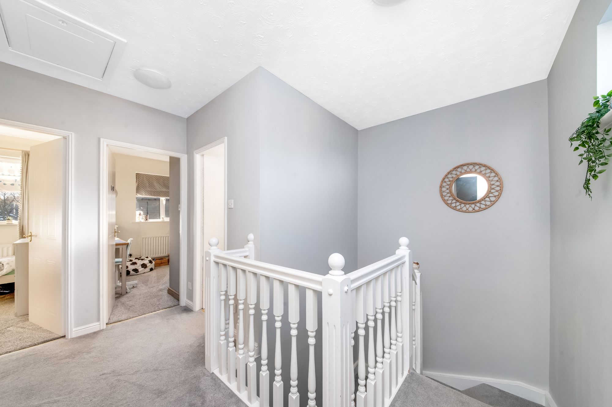 Taking the kite winding staircase from the entrance hall, you reach the first floor landing, which is particularly light and airy and features a wooden banister with spindle balustrade over the stairwell head. There is a bank of double-glazed windows with leaded detailing to the front elevation, two ceiling light points, a radiator, a loft hatch which provides access to a useful attic space, and multi-panel doors provide access to four well-proportioned bedrooms, the house bathroom and a useful airing cupboard.