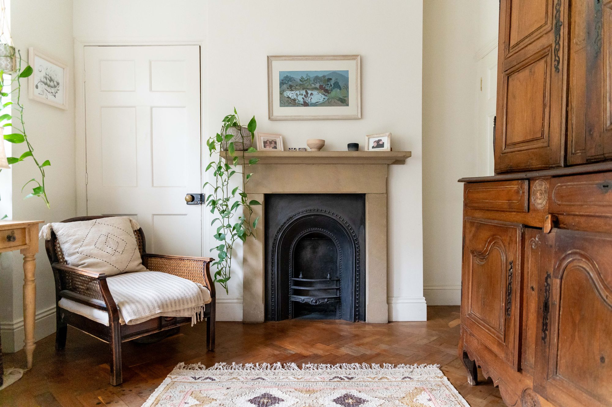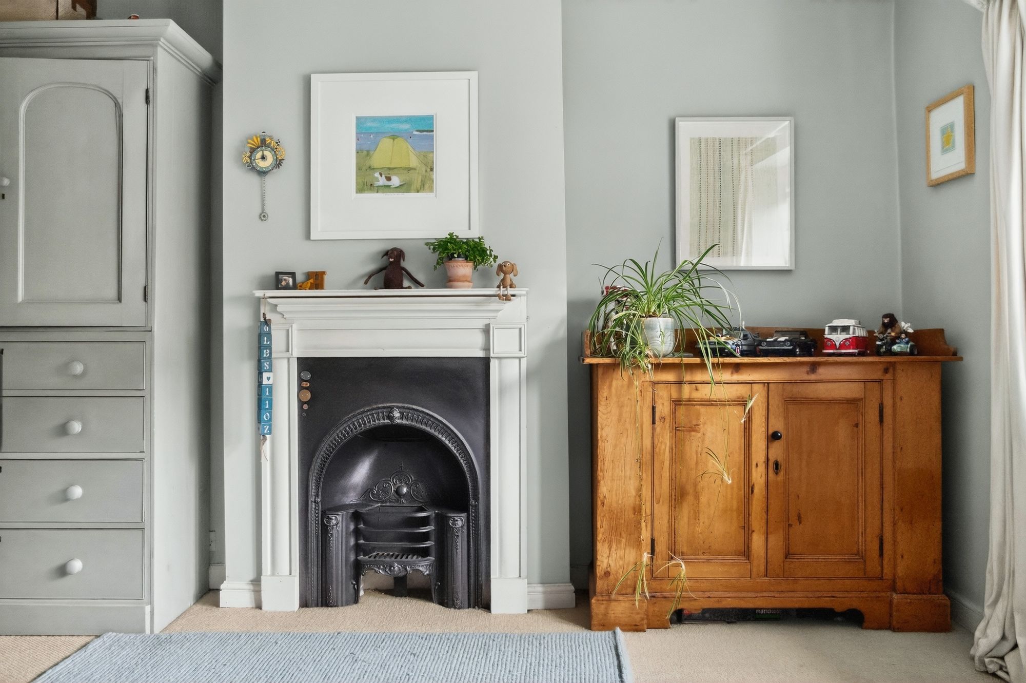 Once again, featuring a beautiful, polished timber floor, high ceiling height with ceiling light point, delightful, period-style fireplace with cast iron, inset open-fired grate and window giving a lovely view out over the property’s front gardens and village scene and long-distance views beyond.