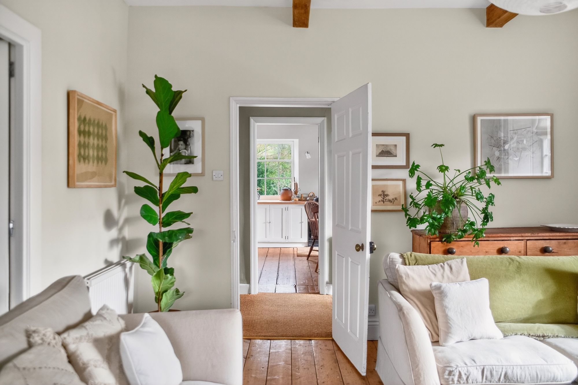 A lovely room with a very high ceiling height with two beams on display, two large windows, one, which gives a lovely view out over the property’s side gardens and driveway, the other giving a lovely view over the property’s formal front gardens and a view across the village with the bowling green in the distance. The room has a period-style, polished, timber board floor, a delightful, period-style fireplace with open-fired grate. Twin doors and a further door from the entrance hall gives access to the second sitting room.