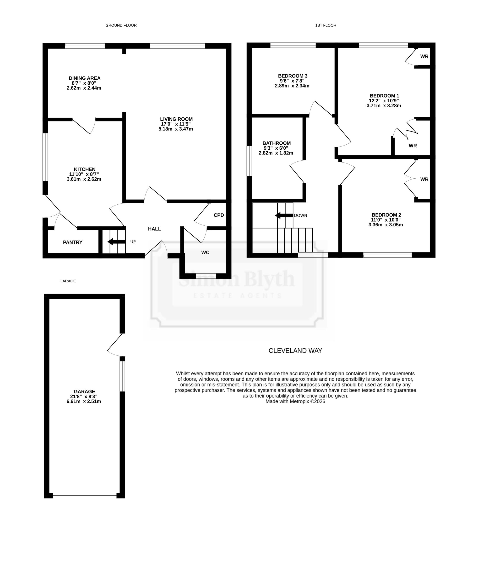 The garage features an up-and-over door, with lighting and power in situ. There is a double-glazed window with obscure glass to the side elevation, as well as a pedestrian access door to the side.
