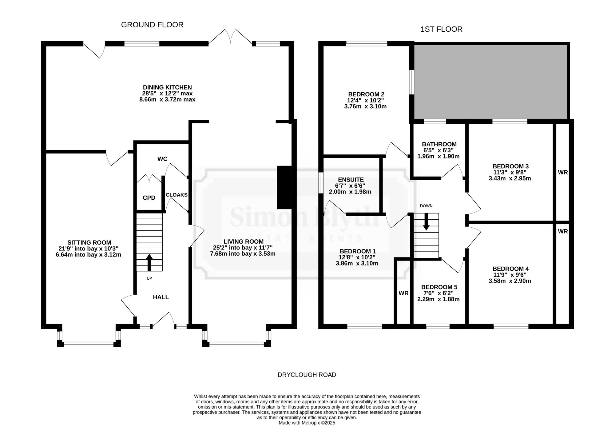 The accommodation is served by a gas central heating system, pvcu double glazing and briefly comprises to the ground floor, entrance hall, cloak room, downstairs WC, large living room and sitting room, 28 foot dining kitchen with French doors to the rear garden. First floor landing leading to master bedroom with en suite shower room, four further bedrooms and bathroom.