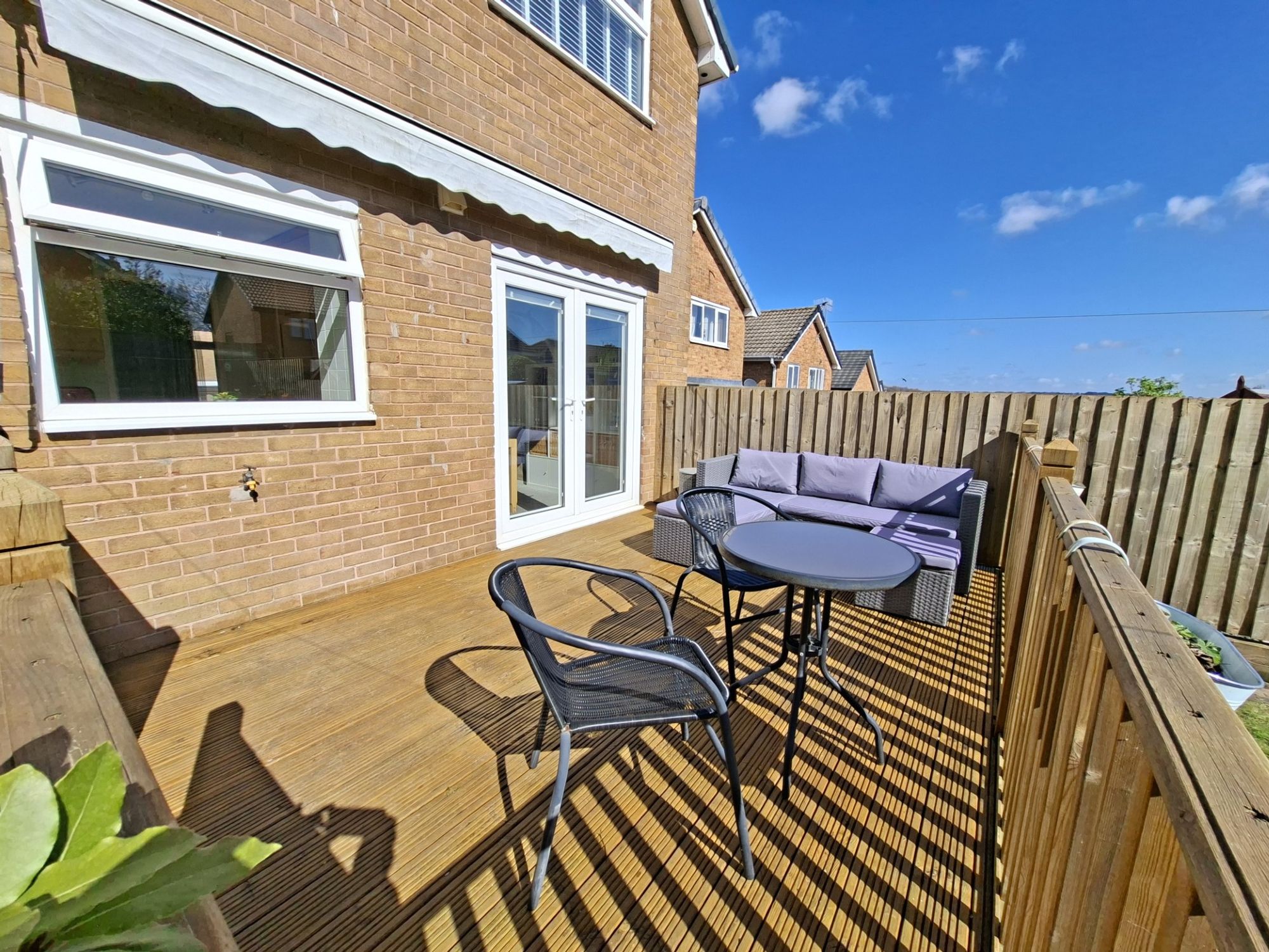 THIS IS A SUPERB DETACHED THREE BEDROOM FAMILY HOME. YOU ENTER THE PROPERTY THROUGH uPVC GLAZED PORCH THAT IS IDEAL FOR STORING COATS AND SHOES. THE REMAINDER OF GROUND FLOOR IS ARRANGED WITH A FRONT TO BACK OPEN PLAN LIVING ROOM/DINING AREA THAT HAS ACCESS TO THE FANTASTIC REAR GARDEN VIA A SET OF FRENCH DOORS. THE FAMILY KITCHEN IS OFF THE LIVING ROOM HAS AMPLE CUPBOARD & WORKTOP SPACE ALONG WITH A SIDE DOOR ACCESSING THE PATH TO THE SIDE OF THE HOUSE TO THE FRONT DRIVEWAY AND TO THE REAR GARDEN. THE FIRST FLOOR OFFERS A GOOD SIZE DOUBLE BEDROOM WITH BUILT-IN STORAGE SPACE THE REAR, A SECOND DOUBLE BEDROOM TO THE FRONT WITH GREAT VIEWS, A THIRD SINGLE BEDROOM AND A MODERN FAMILY BATHROOM. THE GREAT SPACE CONTINUES ON THE OUTSIDE OF THE PROPERTY WITH OFF-STREET PARKING 1-2 CARS TO THE FRONT OF THE HOUSE AND PRIVATE FAMILY & PET FIRENDLY REAR GARDEN THAT IS PART DECKED/PART LAWNED AND IS REAL SUNTRAP. THERE IS ALSO A DETACHED GARAGE LOCATED TO THE REAR OF THE PROPERTY THAT HAS POWER & LIGHTING. THIS IS A MUST VIEW HOUSE SO AS NOT TO AVOID DISAPPOINTMENT.
