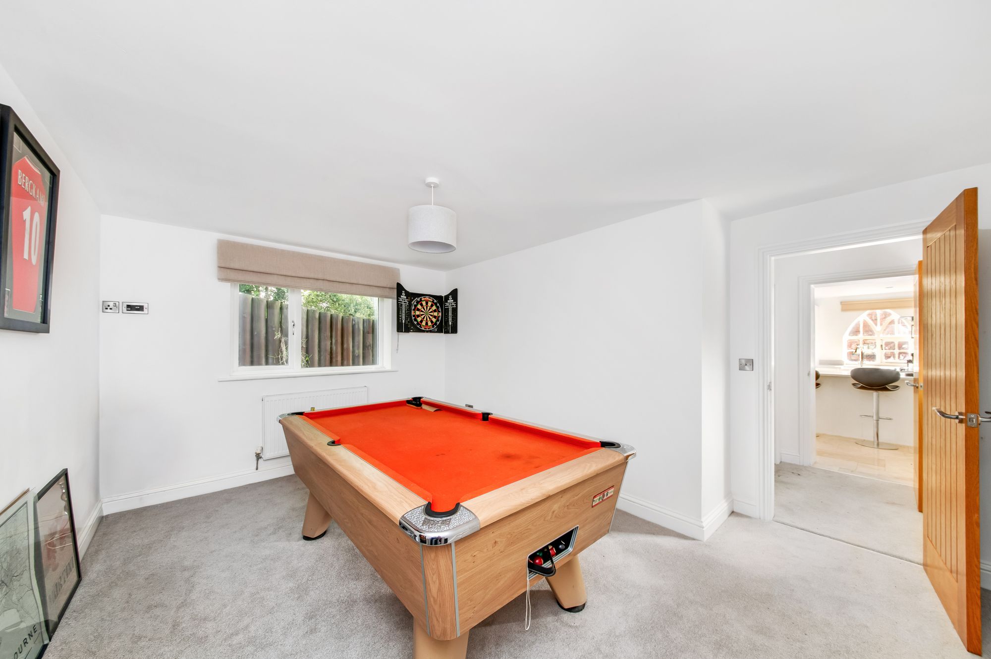 This ground floor bedroom is currently used as a games room and has a window, sorry, is used as a games room. Staircase rises up to the first floor level.