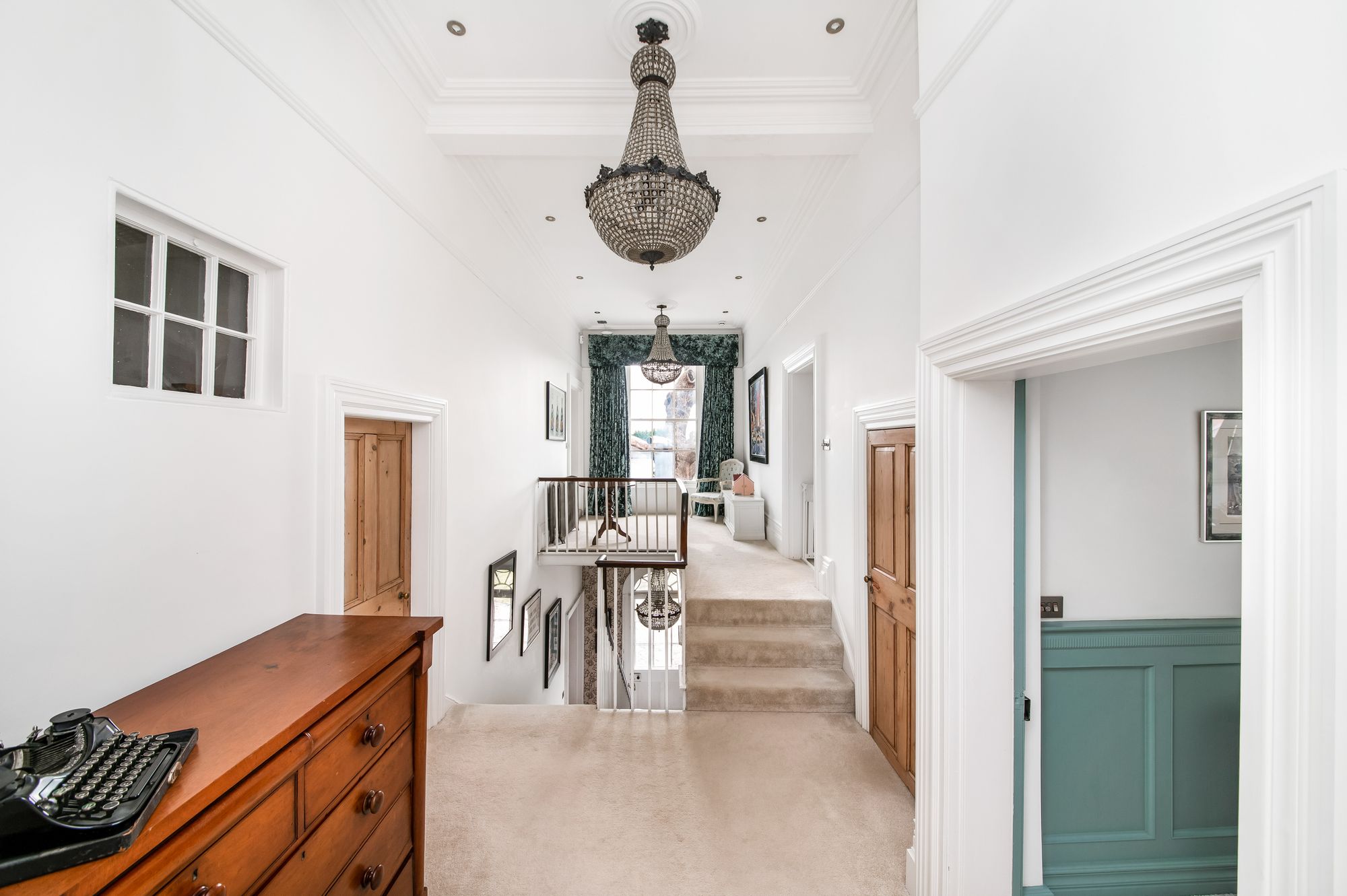 In a highly commutable location, this Grade II listed much-loved period home has a fabulous amount of character, both inside and out. It's six/ seven bedroom accommodation includes such features as impressive entrance hallway, sitting room, second sitting room stroke cinema room, library/snug, family room adjoining the huge conservatory which itself adjoins the dining kitchen, utility room, home office, entertaining area and gym. Five bedrooms on the first floor level, a number of bathrooms. Two bedrooms on the top floor level.