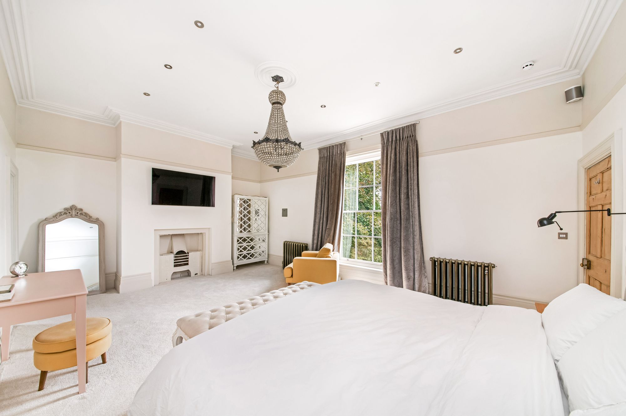 Delightful period room with wonderful views out over the property's front gardens. High quality decor, coving to the ceiling, picture rail, delightful fireplace, chandelier point and inset spotlighting and en suite of a particularly impressive size.