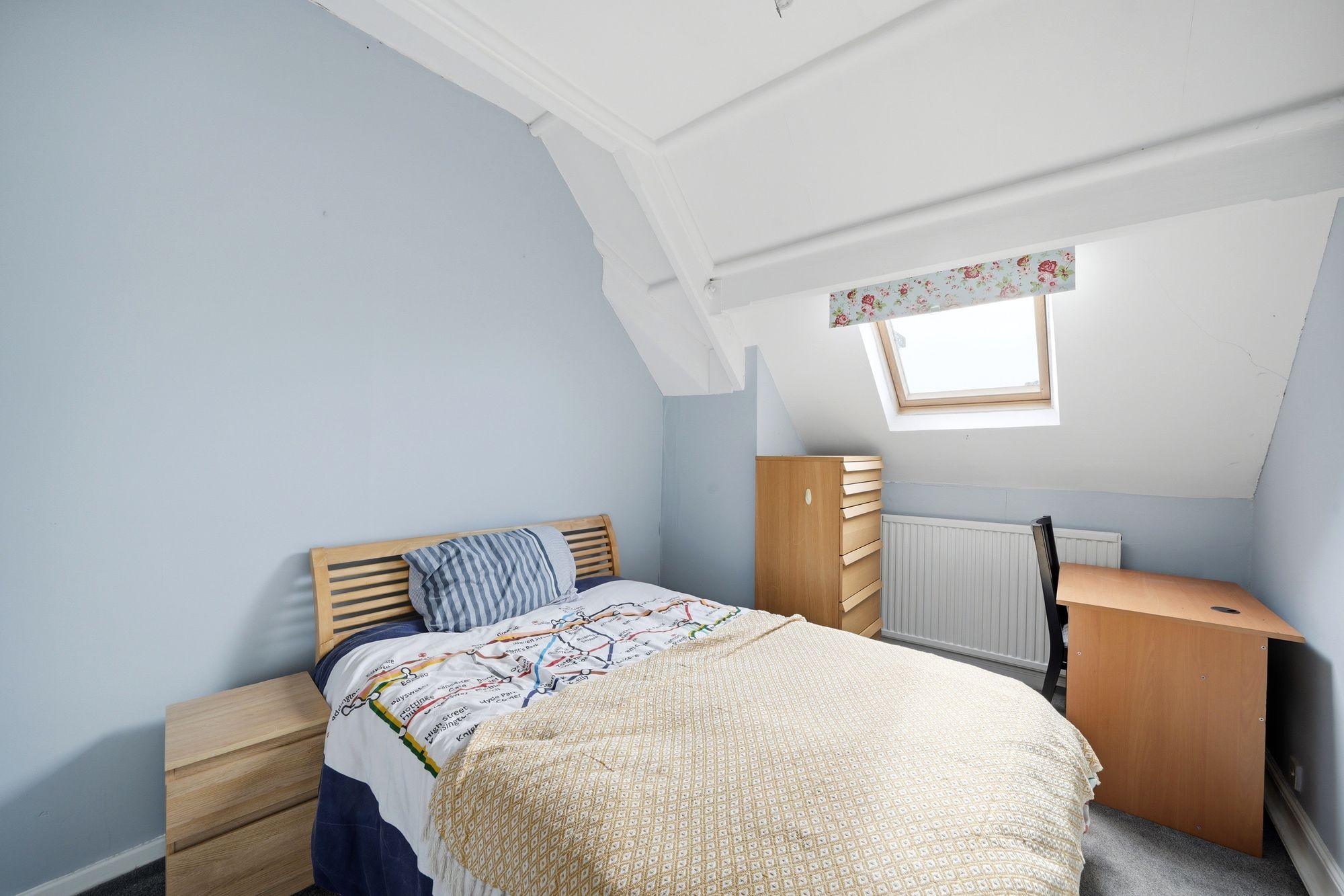 As the dimensions indicate this is a particularly spacious principal bedroom which has two tall uPVC double glazed windows which take full advantage of some interesting far-reaching views over the town with Castle Hill in the distance. There is a decorative ceiling rose with ceiling light point, partly exposed roof timbers and two central heating radiators.