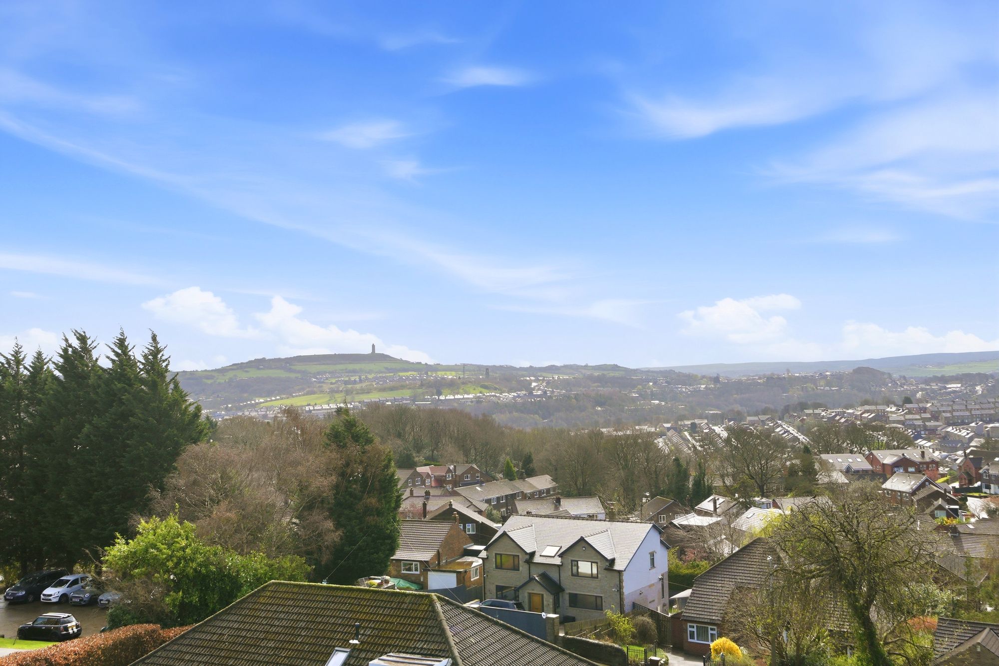 A generously proportioned reception room which has large uPVC double glazed windows which take advantage of far-reaching views with a southerly aspect stretching across to Castle Hill and beyond. There is a central heating radiator, decorative ceiling rose with ceiling light point, display niche and as the main focal point of the there is a fireplace with a coal effect gas fire resting on a black granite hearth. To the rear of the living room a timber and frosted glazed door gives access to the kitchen.