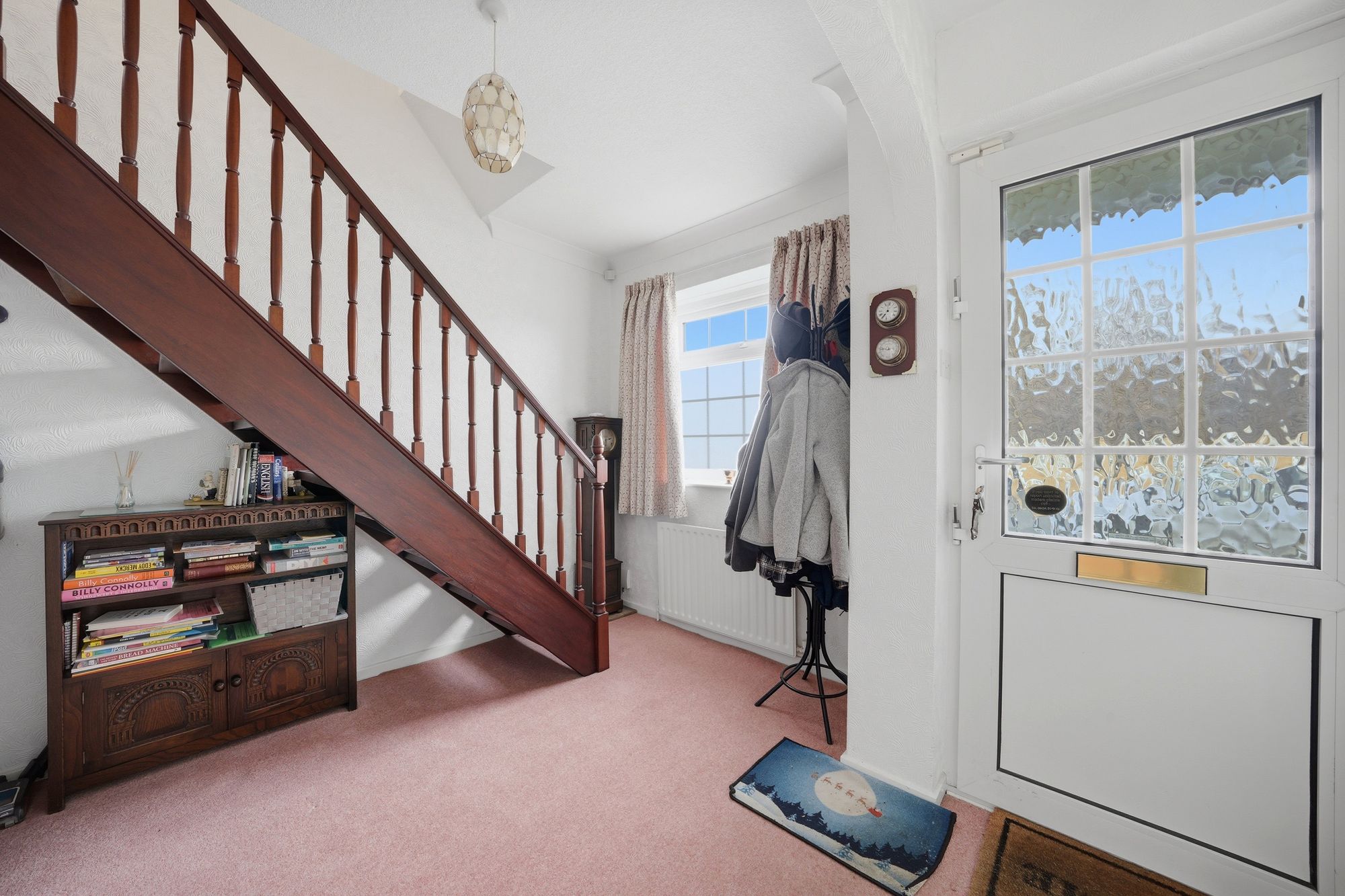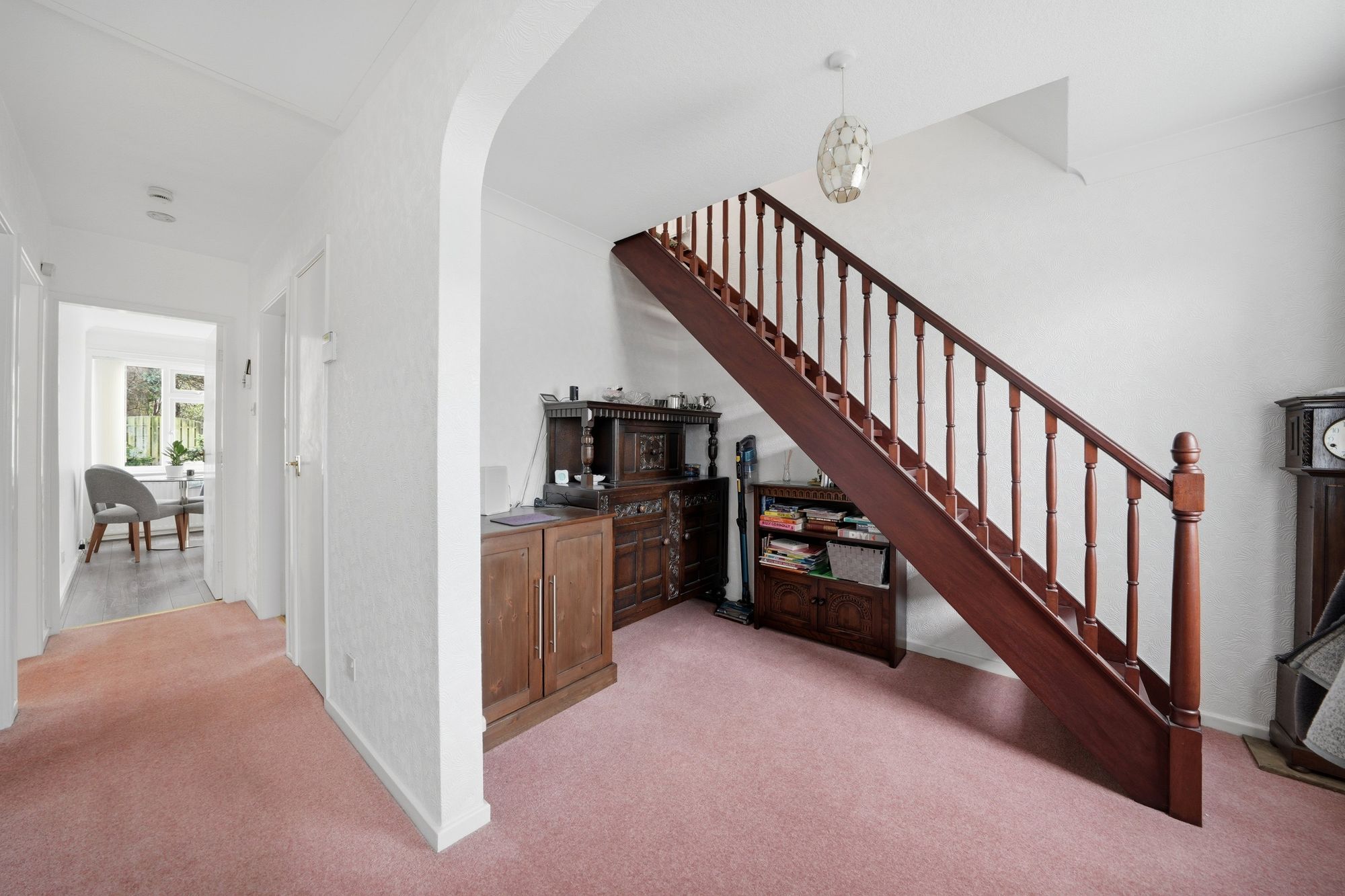 With a uPVC and frosted double glazed door, there is a ceiling light point, central heating radiator and to one side there is an archway giving access to a study area and a useful storage cupboard with fitted shelving. From the hallway access can be gained to the remaining ground floor accommodation which comprises living room.
