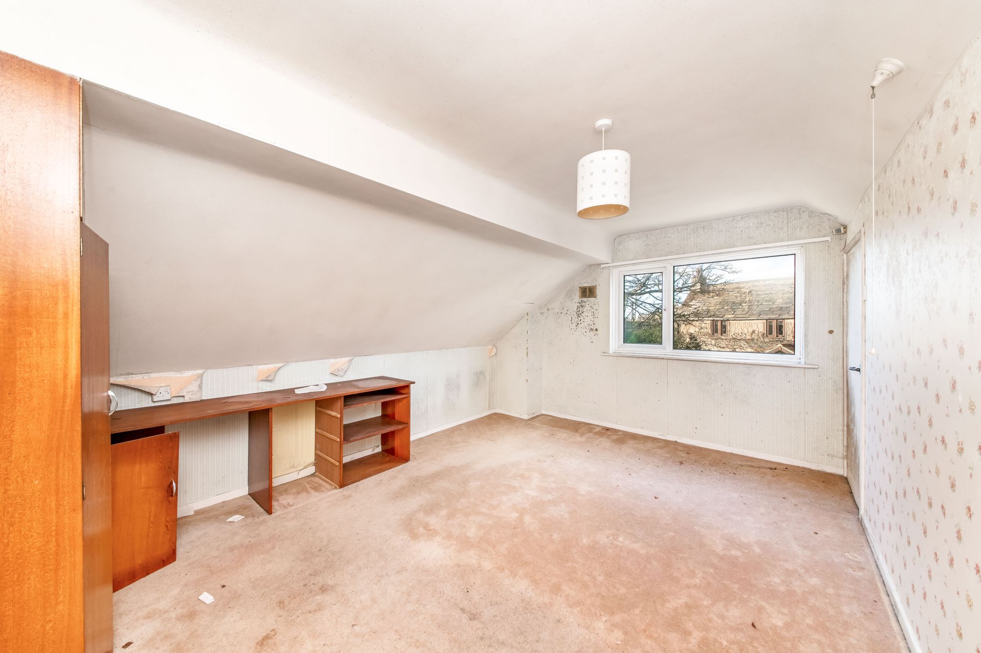 Bedroom two is a pleasant double room with a gable window, a bank of built-in wardrobes and a large under-eaves storage cupboard.