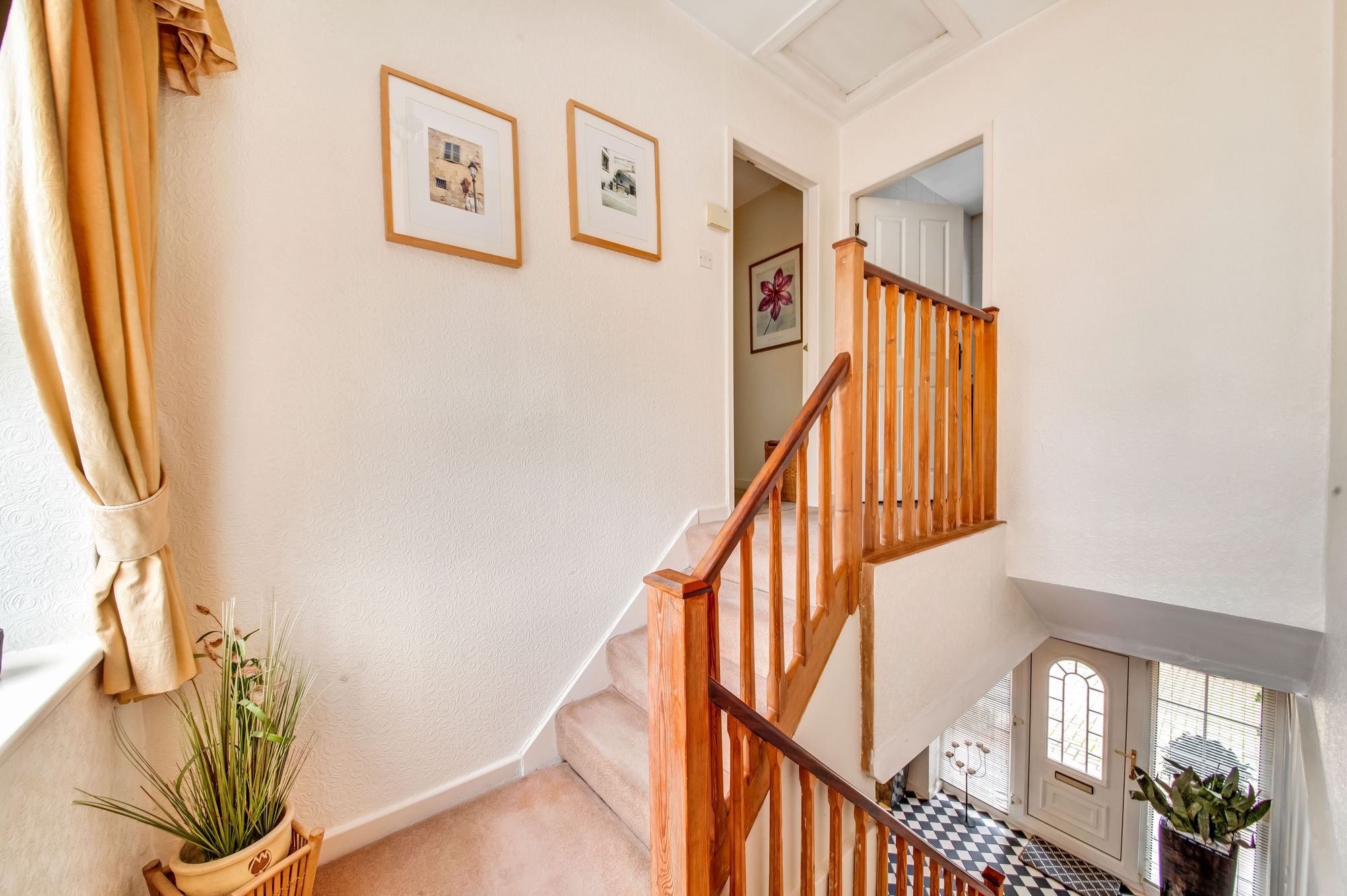 Taking the staircase from the entrance hall, you reach a half landing which provides access to both the east and west wings of the property. With a beautiful arched window to the rear elevation and a ceiling light point.