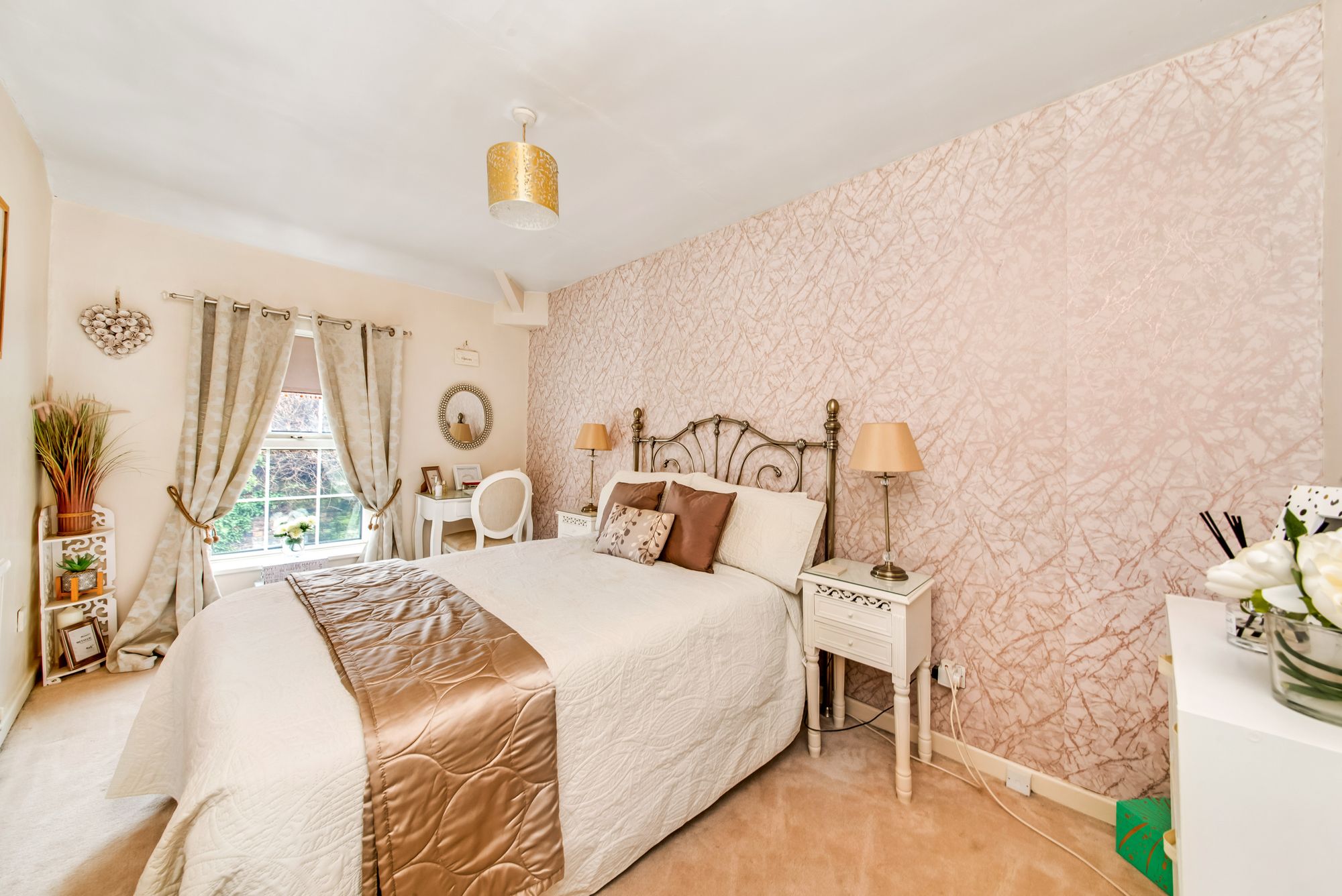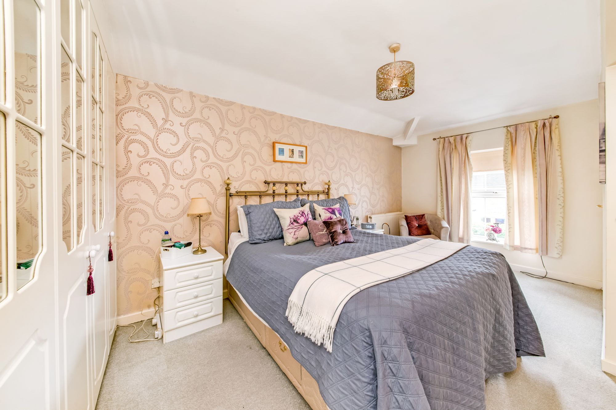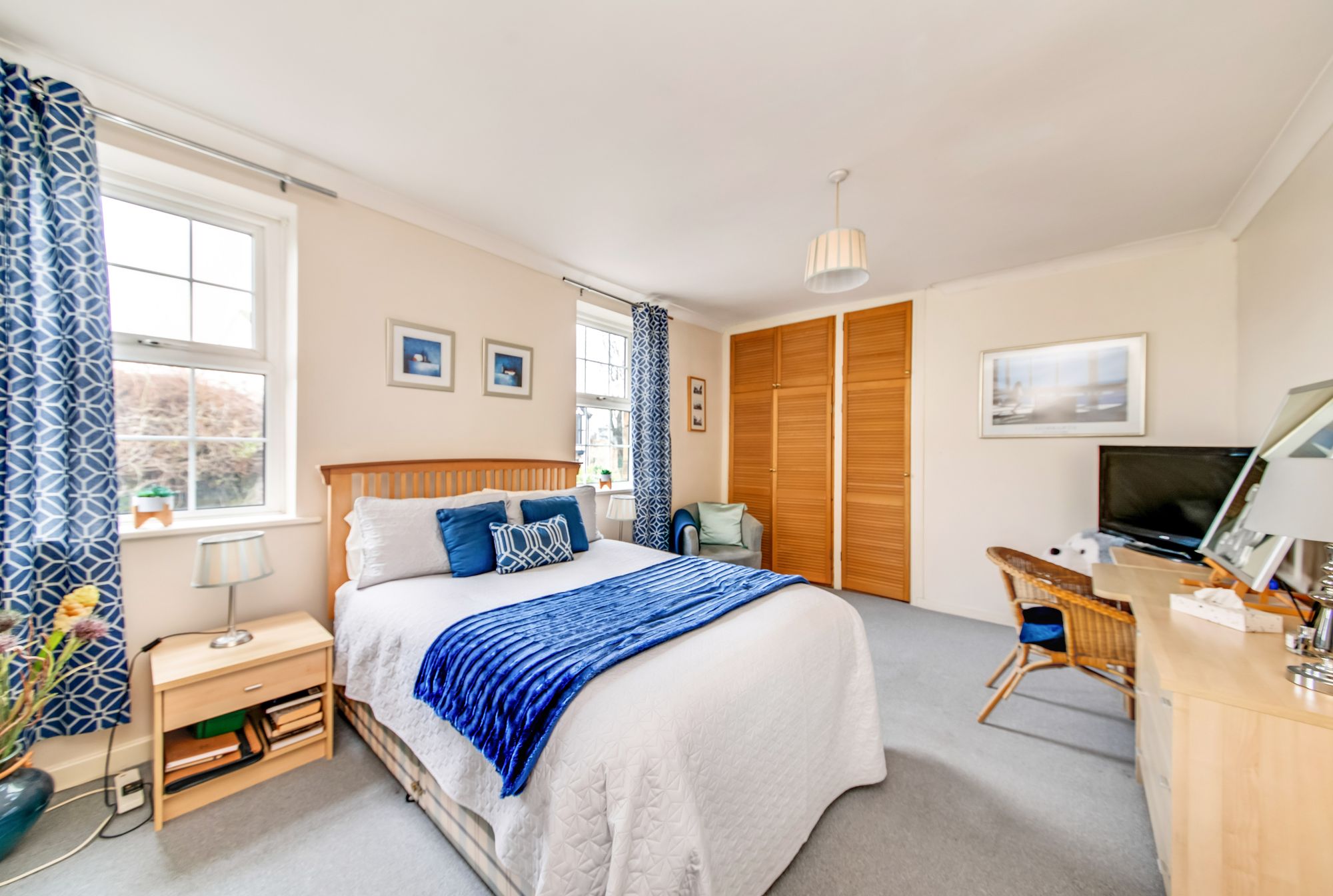 As the photography suggests, bedroom two is a generously proportioned, light and airy double bedroom which has ample space for free standing furniture. There are two double glazed windows to the front elevation which have pleasant views on to the gardens and courtyard. The room features decorative coving to the ceilings, a radiator, a ceiling light point and a bank of fitted wardrobes which have hanging rails and shelving in situ.