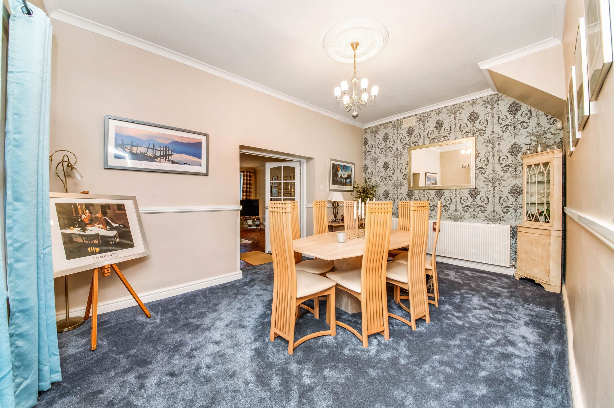 The formal dining room is a fabulous reception room with high ceilings and decorative coving on display. There is a central ceiling light point with ornate ceiling rose, a decorative dado rail, a radiator and a double glaze window to the front elevation. There are multi panel timber and raised doors which proceeds to the lounge.