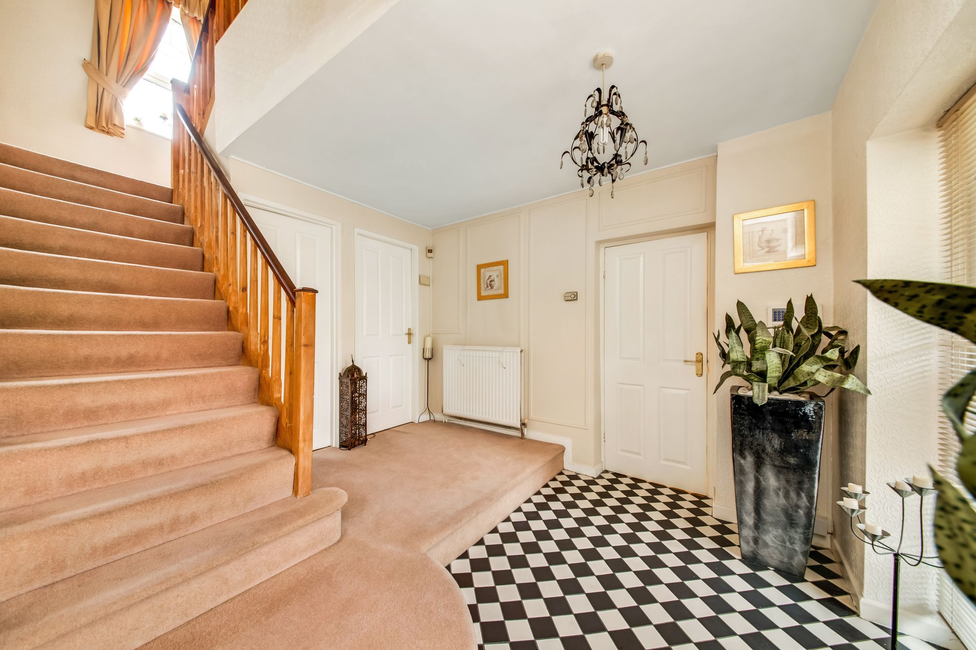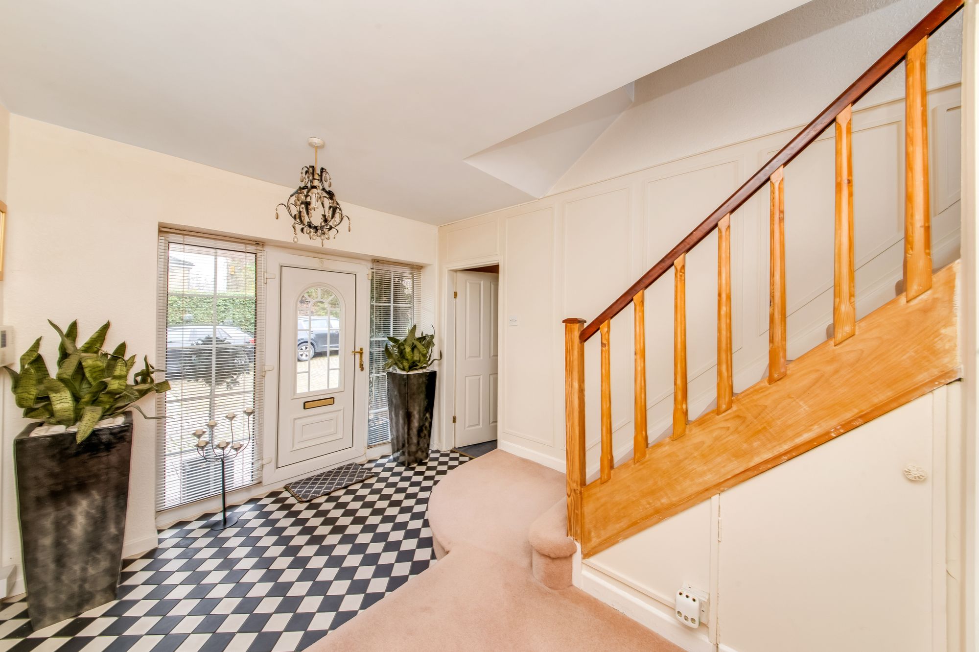 Enter into the property through a double-glazed front door with adjoining double-glazed windows at either side into the entrance hall. The entrance hall features attractive tiled flooring, a ceiling light point, decorative wall panelling and a staircase rising to the first floor with wooden banister and chamfered spindle balustrade. There are multi panel doors providing access to the formal dining room, living dining kitchen and family room, also providing access to a cloak cupboard and the downstairs W.C. There is a radiator and a useful understairs cupboard.