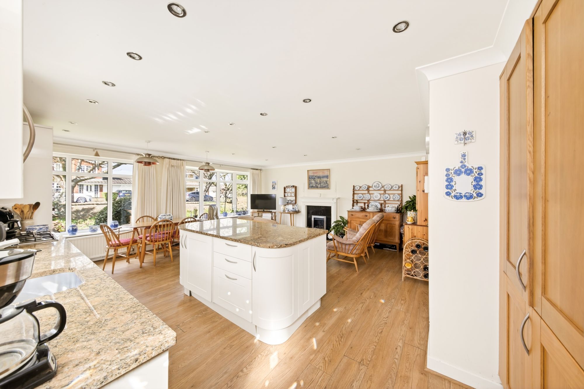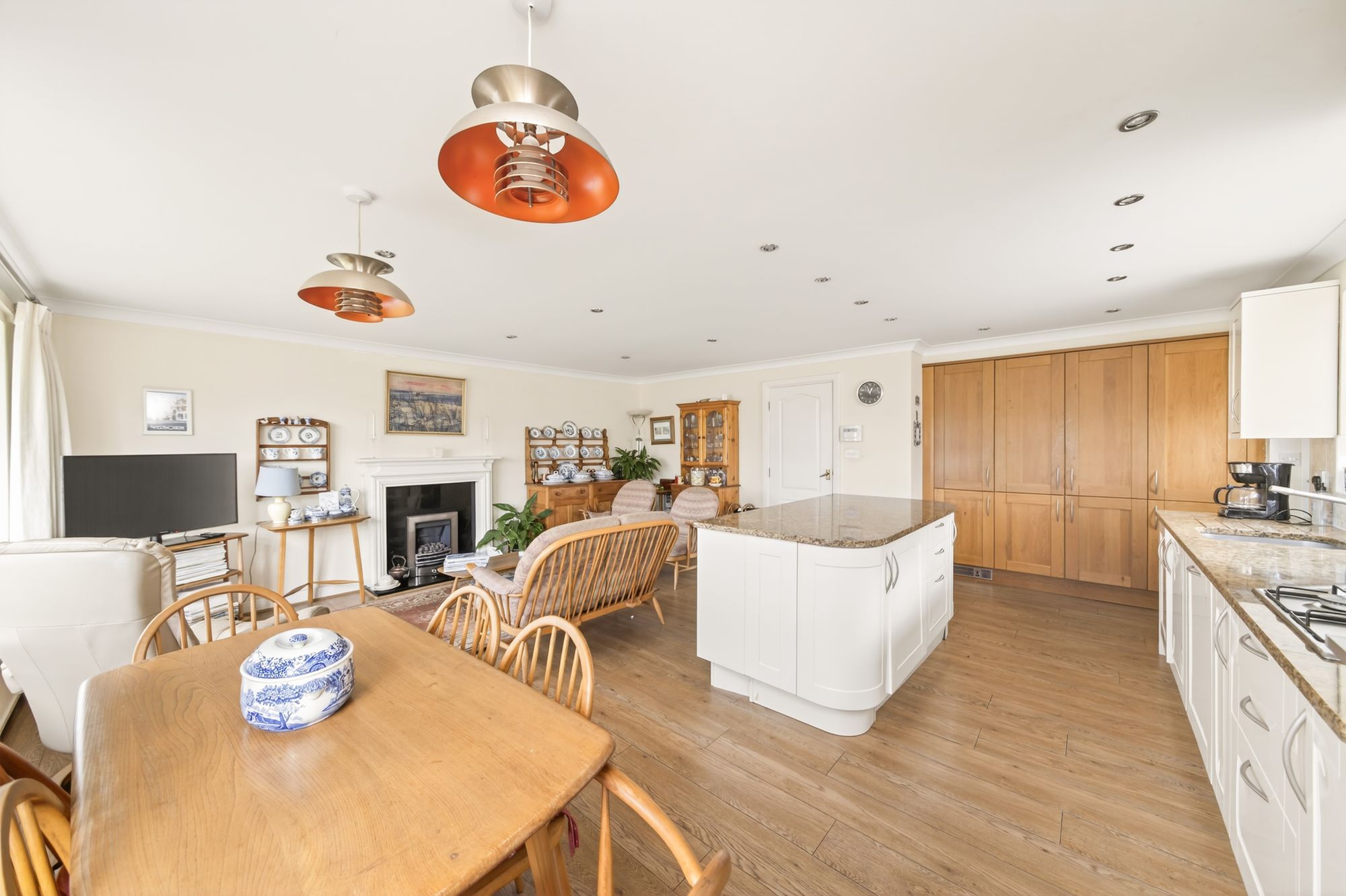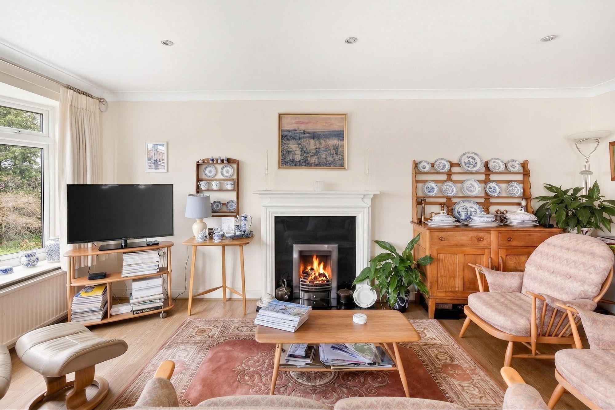 A most impressive light and airy dual aspect space with banks of windows to the front and side elevations with an additional bay window to the front providing pleasant views onto the gardens. The high quality flooring continues through from the entrance hall and there is decorative coving to the ceiling, inset spotlighting and a radiator.